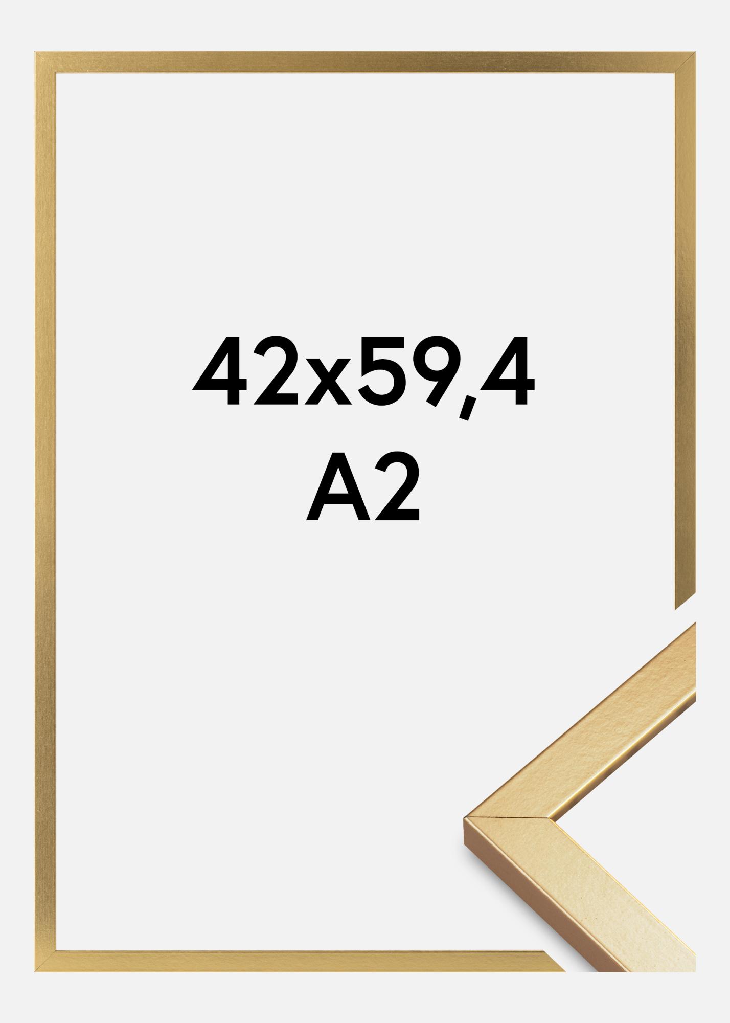Valmistatud Hollandis, ühendab see raam kvaliteedi ja disaini, et esitleda sinu pilte parimal viisil. Mõõtudega 42 x 59,4 cm (A2) sobib see ideaalselt standardmõõtude jaoks ning on suurepärane valik kõigile, kes soovivad oma seintele anda kuldse raamimisega värskendust.