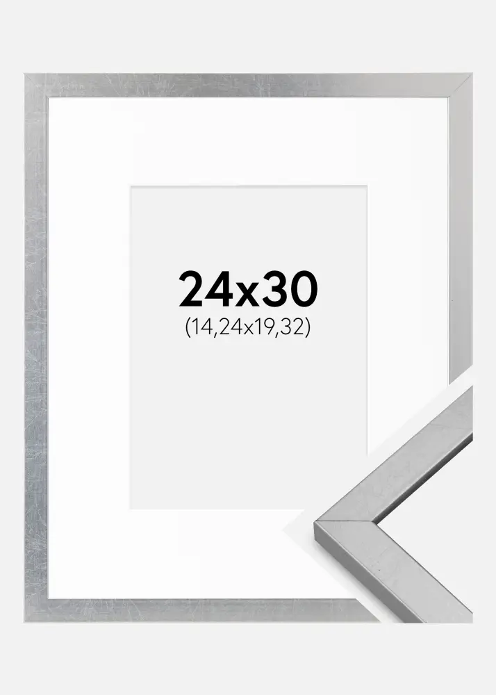 Raam Minerva Hõbedane 24x30 cm - paspartuu Valge 6x8 tolli