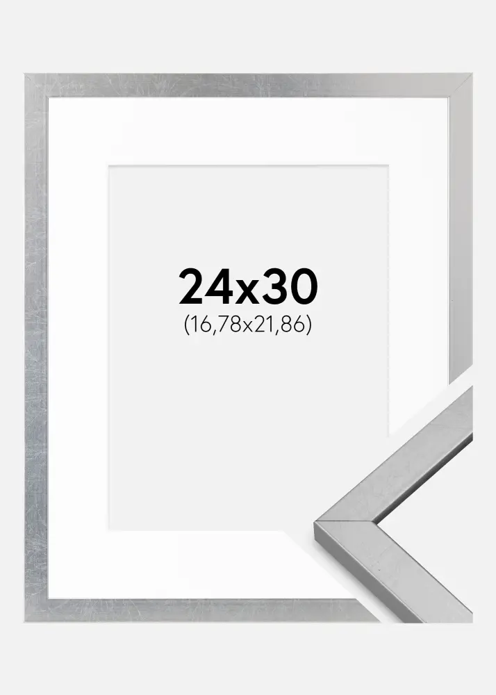 Raam Minerva Hõbedane 24x30 cm - paspartuu Valge 7x9 tolli