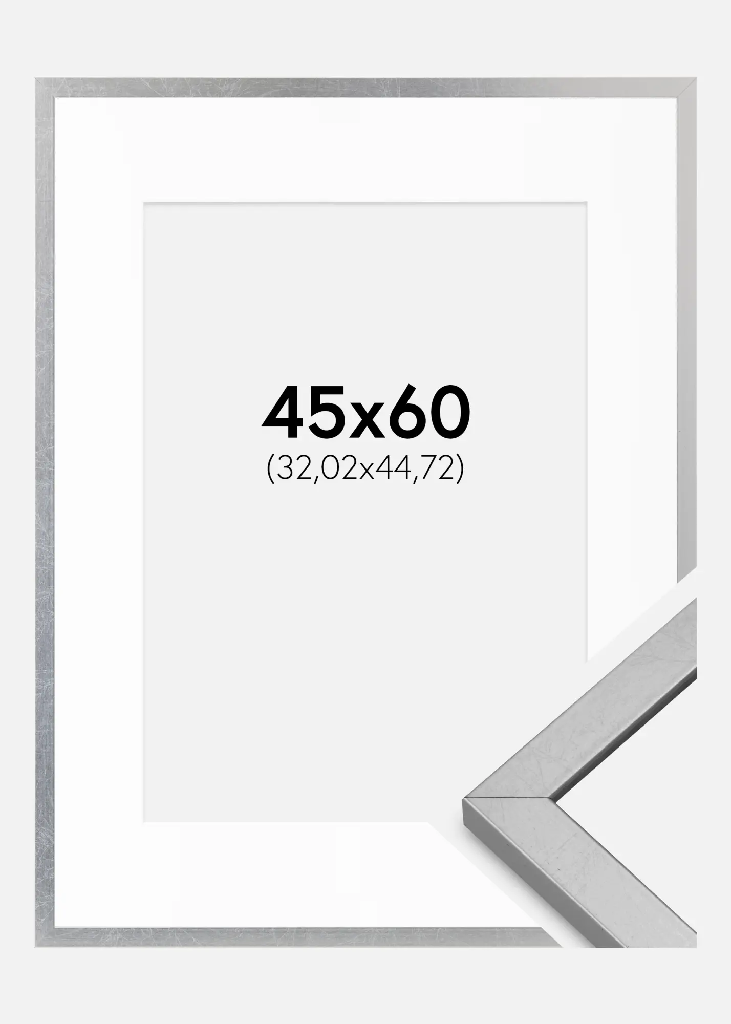 Raam Minerva Hõbedane 45x60 cm - paspartuu Valge 13x18 tolli
