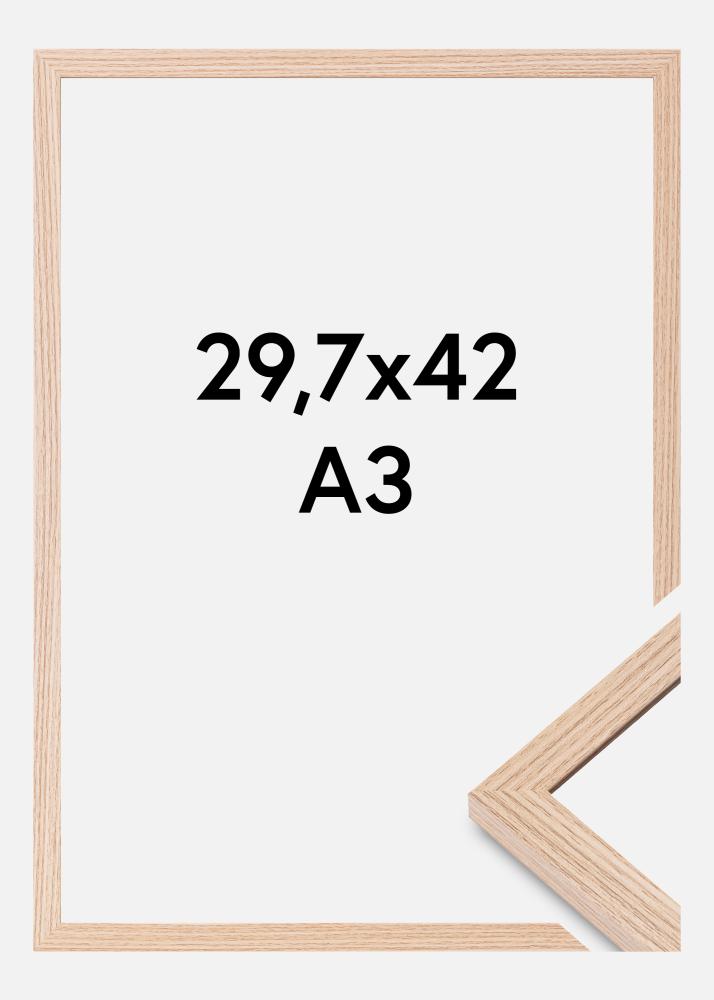 See mitmekülgne raam on saadaval mitmetes suurustes, kuid 29,7 x 42 cm (A3) variant sobib ideaalselt standardsete trükiste ja diplomite suurusele. Olenemata sellest, kas soovid luua modernse pildiseina või vajad lihtsalt lihtsat lahendust oma viimase kunstiteose esitlemiseks, on meie tammemustriline tammepuidust raam ilmne valik.