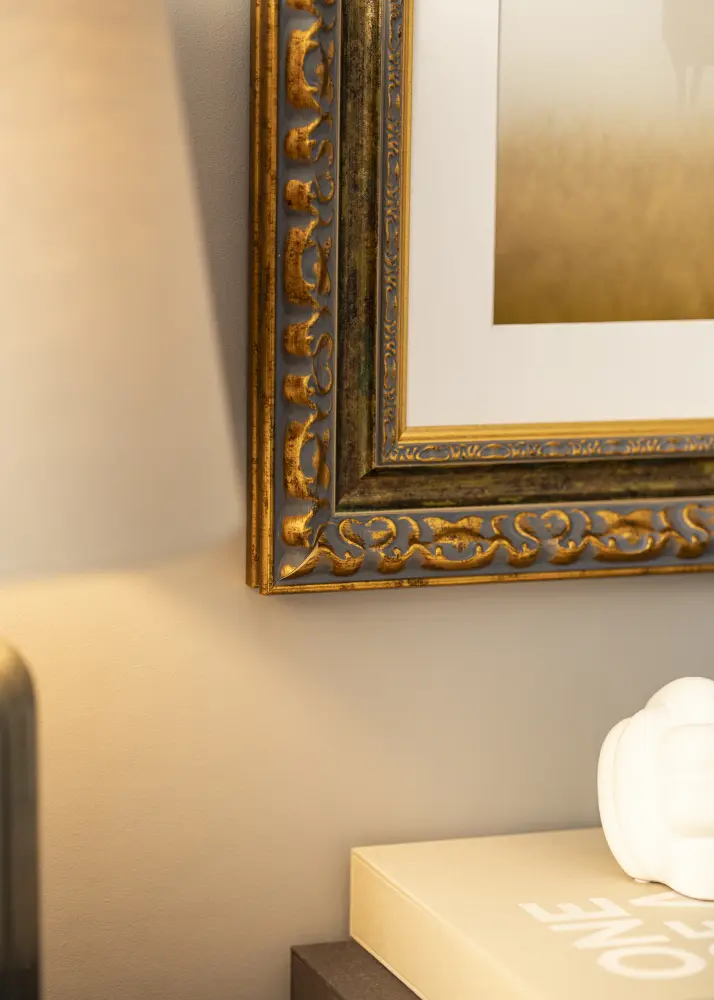 Kas soovid luua kauni pildi vanast sugupuu fotost või ilusast pildist perest? Siin on meil luksuslik raam, mis lisab iseloomu ja tõmbab tähelepanu! Raam on stiilselt kulunud mustritega, mis vahelduvad kuldse ja halli ning kuldse, rohelise ja pruuni vahel. Kuna see valmistatakse meie enda raamitöökojas, võid olla kindel, et saad ilusa kvaliteetse pildiraami.