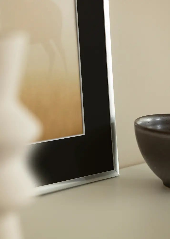 Kogege elegantsi ja stiili meie eksklusiivse hõbedase raamiga, mis on varustatud musta passepartuuga, et esile tõsta teie A3-pilt (29,7x42 cm) parimal viisil. Raami sale profiil, mille laius on 9,8 mm ja sügavus 16,5 mm, lisab teie kunstiteosele või fotole kaasaegset hõngu.