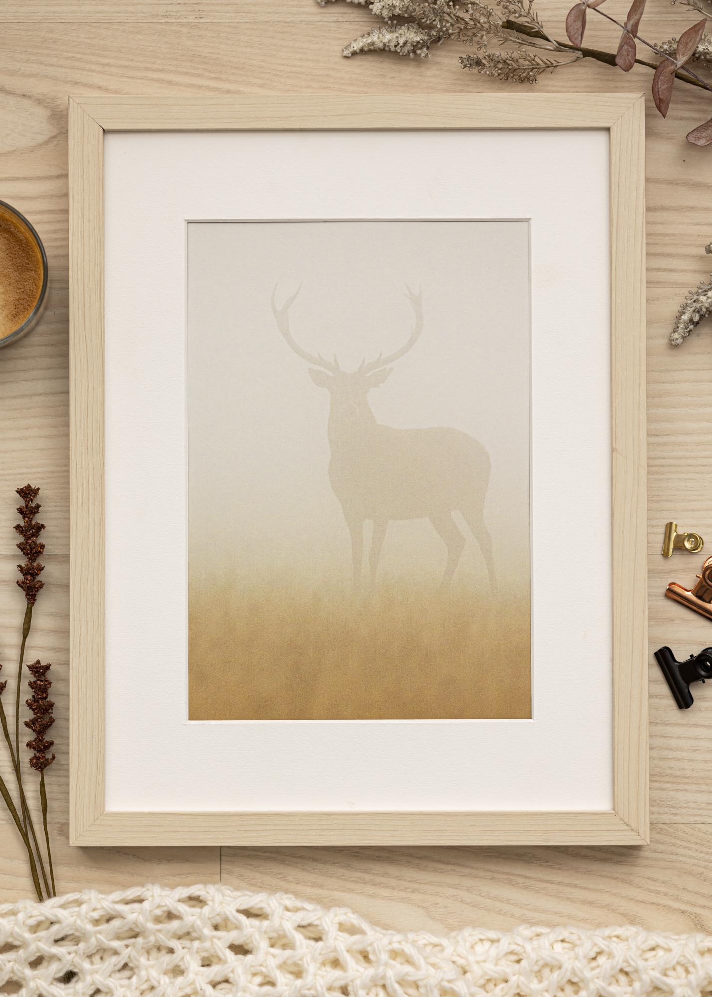 Sobita oma fotod ja postrid looduslähedase raamiga! Loodusest inspireeritud raam sobib ideaalselt nii boheemlaslikesse kodudesse kui ka kaasaegsetesse kodudesse, millel on loodusmaterjalidest detailid. See pildiraam on valmistatud MDF-ist ja varustatud pärisklaasiga, et anda luksuslikumat tunnetust. Foliitud pind omab kaunist puidustruktuuri, mis annab kogu disainile elu, heledama ilmega ja kaunite väikeste värvivarjunditega. Komplektis on stiilne valge passepartout, et sinu pildid saaksid veelgi enam esile tõusta.