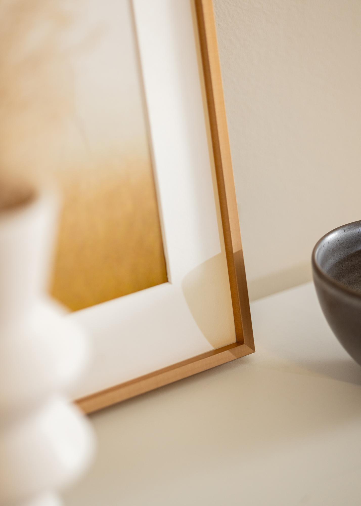 Raami harjatud pind annab pehme sära ja peened värvimuutused, mis aitavad kaasa elavale ja dünaamilisele välimusele. Teravad servad ja minimalistlik disain tugevdavad modernset väljendust, samal ajal kui soe toon loob rafineeritud ja stiilse mulje. See teeb raamist lisaks praktilisele raamimisele ka dekoratiivse detaili sinu kodus.