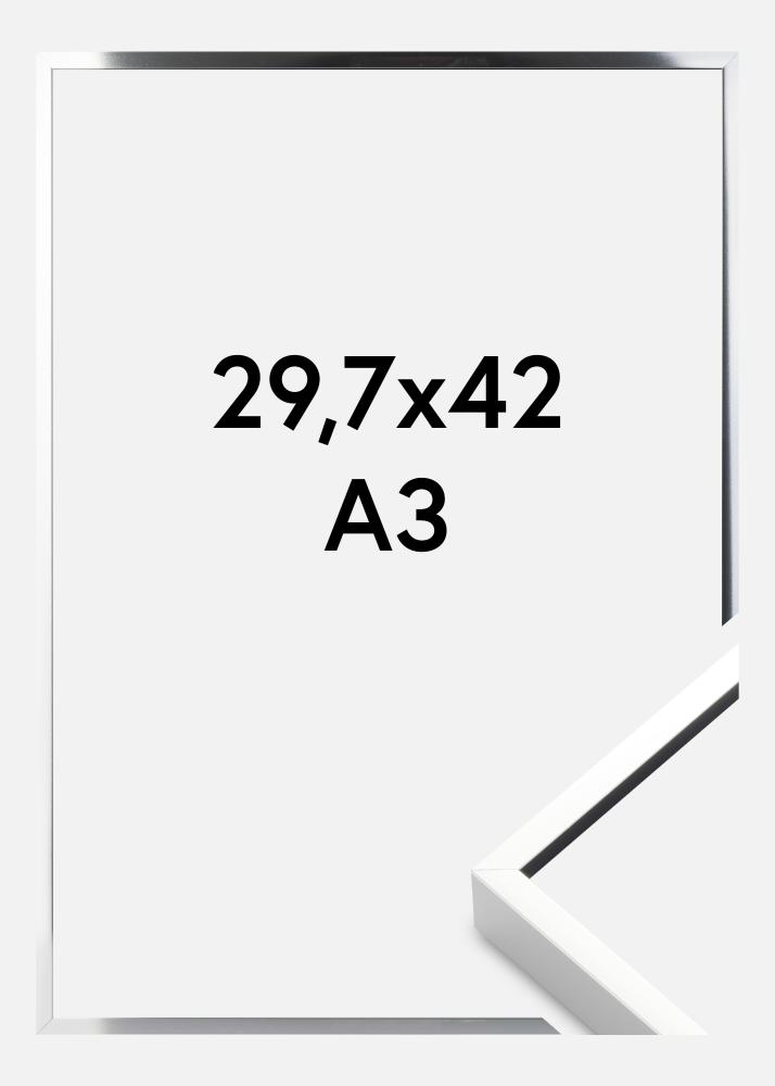 Stiilne läikiv hõbedane pildiraam kõrge kvaliteediga, valmistatud Saksamaal alumiiniumist õhukese raamiliistuga. Raami minimalistlik disain sobib hästi koju, kus on minimalistlik sisekujundus, ja diskreetne helehall hõbedane värv sobib nii fotode kui ka plakatite raamimiseks. Suur valik suurusi teeb raami ideaalseks kasutamiseks pildikollektsioonis, kus maalide kogu hoitakse koos raami valiku abil.
