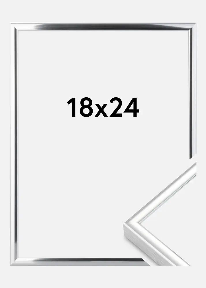 Elegantne hõbedane alumiiniumraam, millel on õhuke profiil ja kaasaegne disain. See on üks Nielseni parimaid alumiiniumraame, mis on kõrge kvaliteediga igas detailis. Täiuslik, kui otsite kaunist raami, mis annaks teie motiivile elegantse raamistuse.
