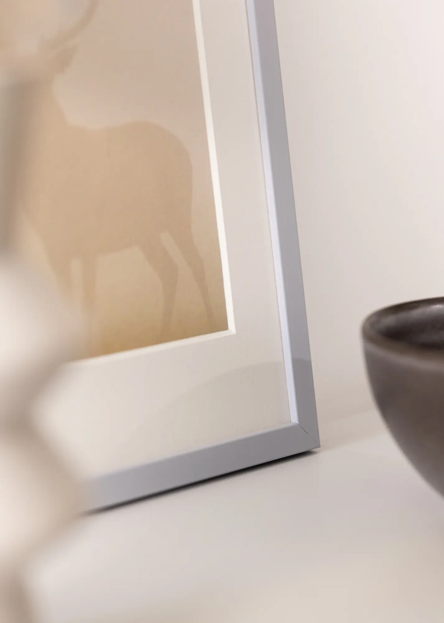 Selle stiilse raami on loonud Taani ettevõte Incado ning sellel on kaasaegne nelinurkne profiil. Raam kuulub NordicLine sarja ning sellel on puhas ja minimalistlik disain, kus nii raami liistulaius kui ka liistesügavus on 15 mm. Pildiraam on valmistatud puidust, kuid sellel on kaetud matt pind heleda taevasinise tooniga, mis lisab teie kodule värvikat aktsenti.