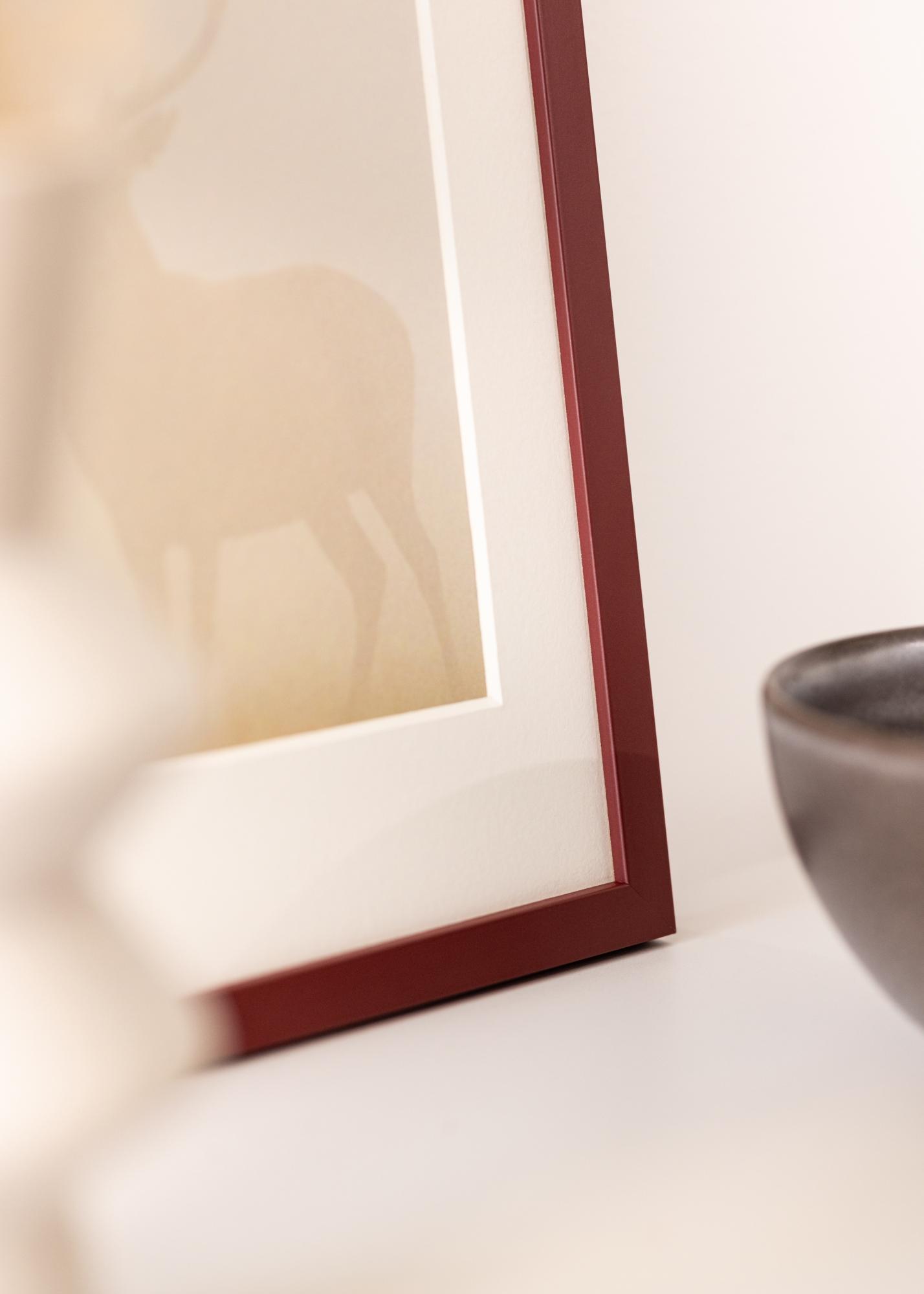 Stiilne raam moodsa ruudukujulise profiiliga, kus nii raamilaiuse laius kui ka raamilaiuse sügavus mõõdavad 15 mm. Raam pärineb Taani ettevõtte Incado sarjast NordicLine ja sellel on trendikas ja minimalistlik disain oma sirgete joontega. Pildiraam on valmistatud puidust ning kaetud mati fooliumiga elegantses veinipunases toonis, mis annab teie motiivile efektse raamistuse.