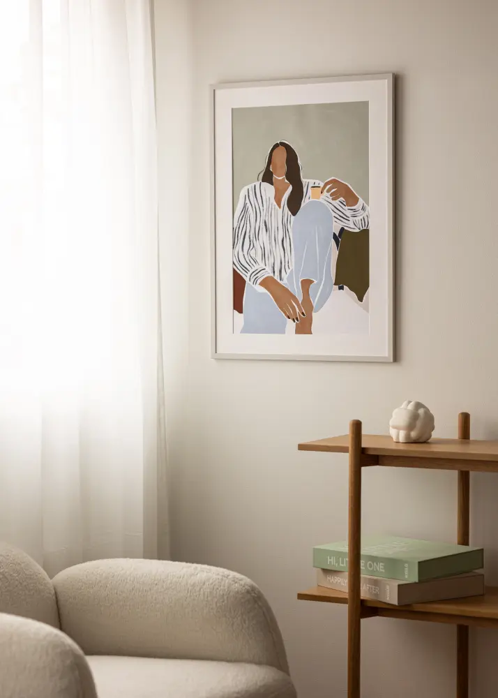 See stiilne raam pärineb Taani ettevõttelt Incado ja kuulub NordicLine'i sarja. Raamil on nelinurkne profiil 15 mm laiuse ja sama sügavusega äärega. Pildiraam on valmistatud puidust, millel on kaetud matt pind kaunis helehallis toonis, mis muudab selle neutraalseks ja seetõttu sobib see nii värviküllaste või kontrastsete motiivide kui ka rahulike või mustvalgete piltide jaoks.