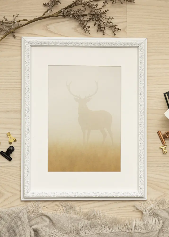 Käivita raamivalija »Nostalgia on korralik valge retro raam kaunite kaunistustega. Oma laia profiiliga sobib Nostalgia Valge hästi piltidele, mida tahad eriti hoolikalt esile tõsta.