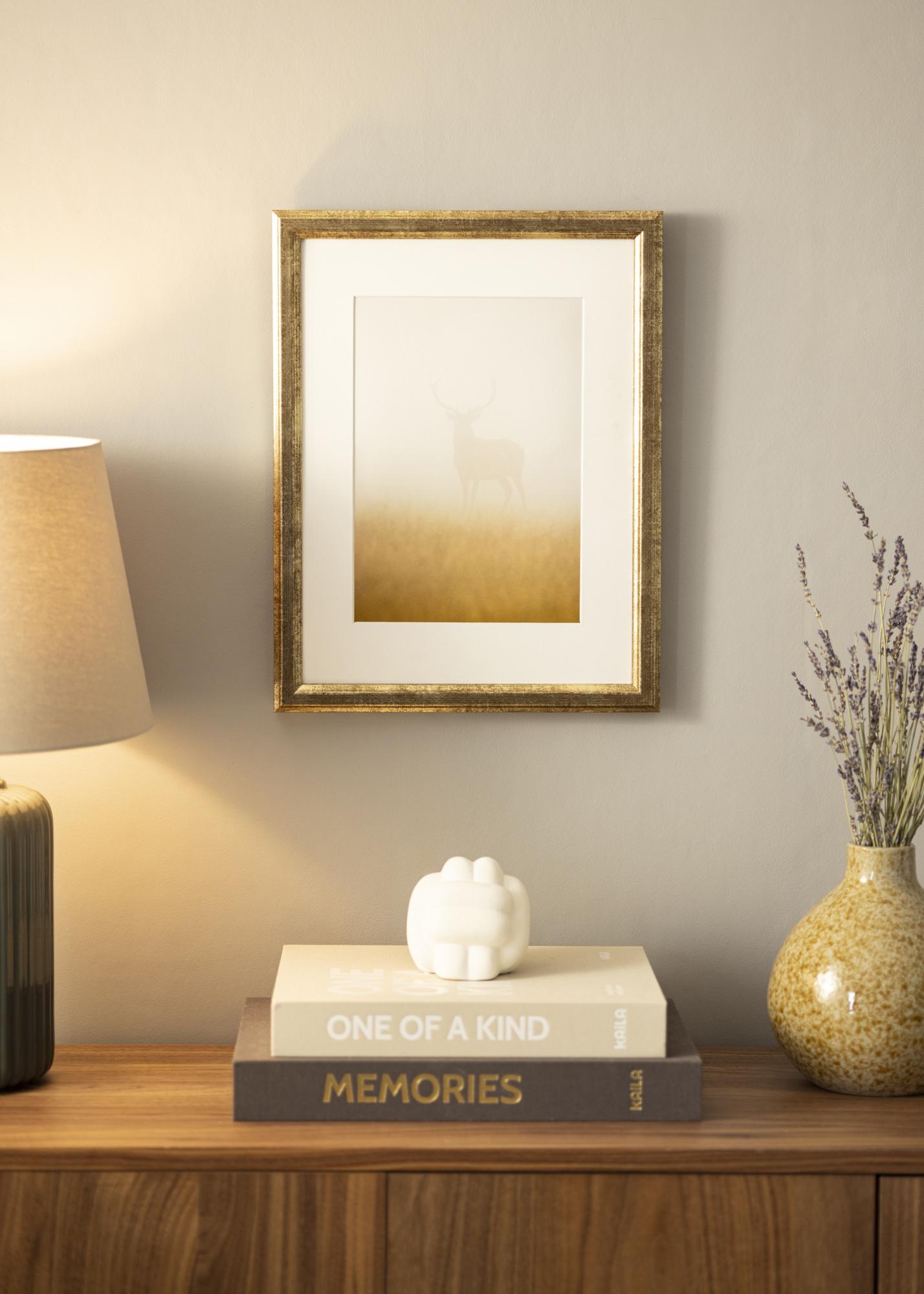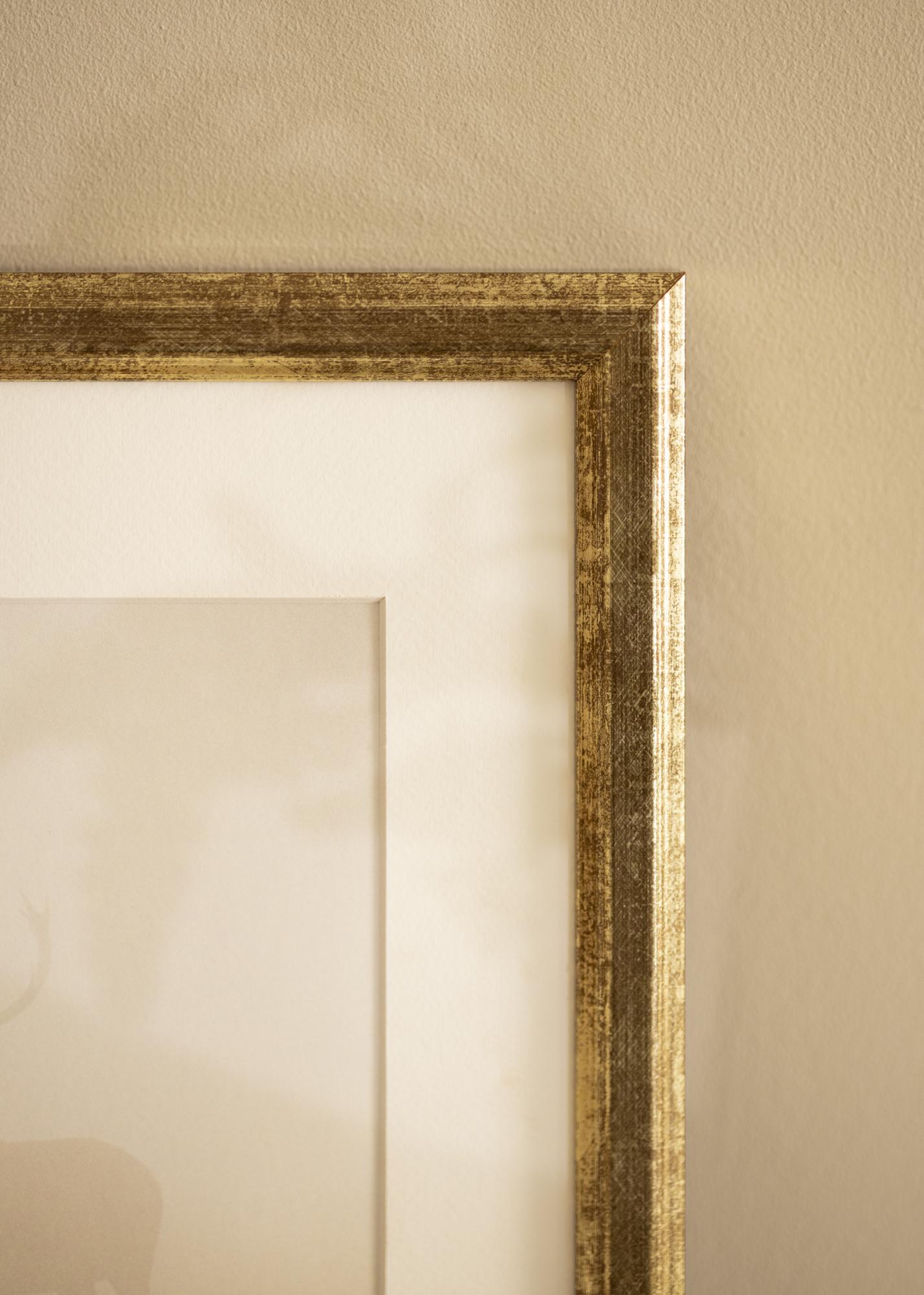 Raam Nyhyttan Antiik Kuld on elegantne ja mitmekülgne pildiraam, mis valmistatakse meie enda raamitöökojas. Oma peene kuldse värvi ja antiikse patineeritud pinnaga pakub see raam diskreetset struktuuri, mis annab rustikaalse tunde. Kulunud viimistlus kombineerituna elegantsete servadega loob ajatu raamistiku, mis sobib suurepäraselt kunstiteoste ja fotode jaoks, millel on klassikaline või vintage iseloom.