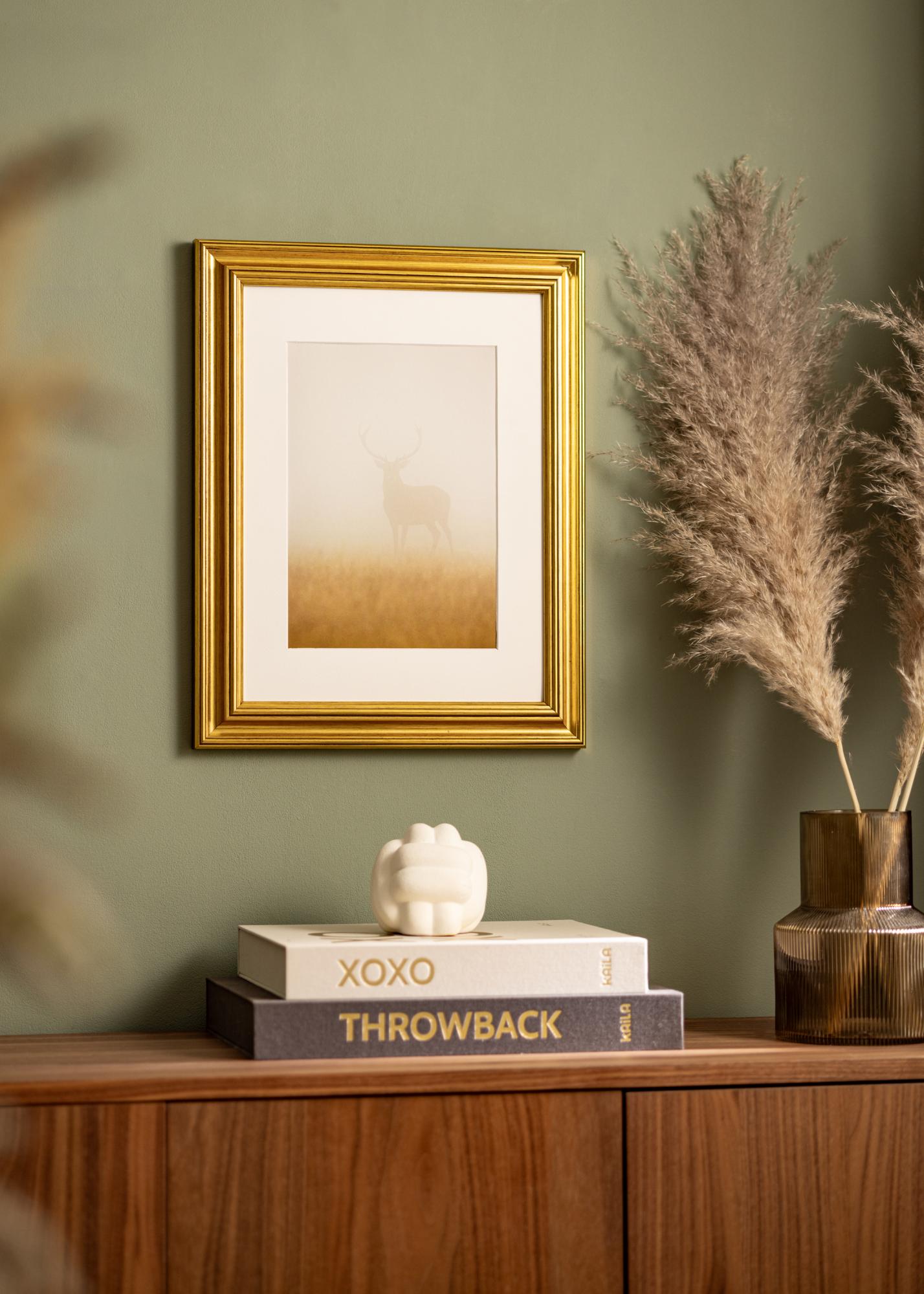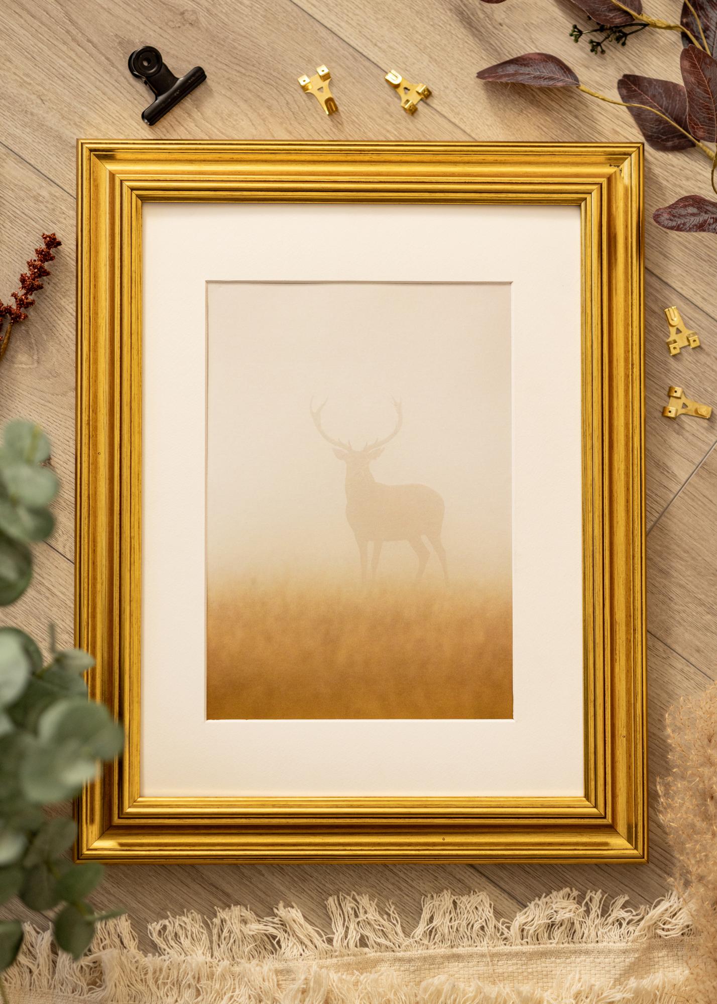 Eksklusiivne klassikalise profiiliga kuldne puidust raam käsitsi maalitud tunde ja sära annab raamile elava ja kena ilme. See on stiilne raam, mis sobib nii maastikumaalide, portreede kui ka natüürmortide raamimiseks, või miks mitte ka graafiliselt lihtsa plakati intrigeeriva kontrasti loomiseks. Kuldtooniga raamid sobivad hästi nii antiikse sisekujundusega koju kui ka linnaelamusse, mis soovib saada elegantset puudutust. Riputage mitu erineva stiiliga maalid kuldraamidega koos, et luua kunstisein.