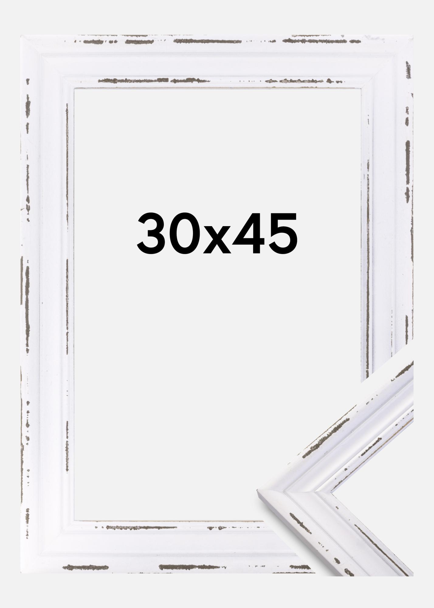 Kui sul ei ole õnne pärida vanu raamitud sugulaste fotosid, tuleb need pildid ise luua. Siin on meil dekoratiivselt kulunud raam, mis sobib täiuslikult selleks otstarbeks! Raam on valge, klassikaliselt profileeritud liistu ja kulunud osadega, kus puit paistab läbi. Vali erinevate suuruste vahel!