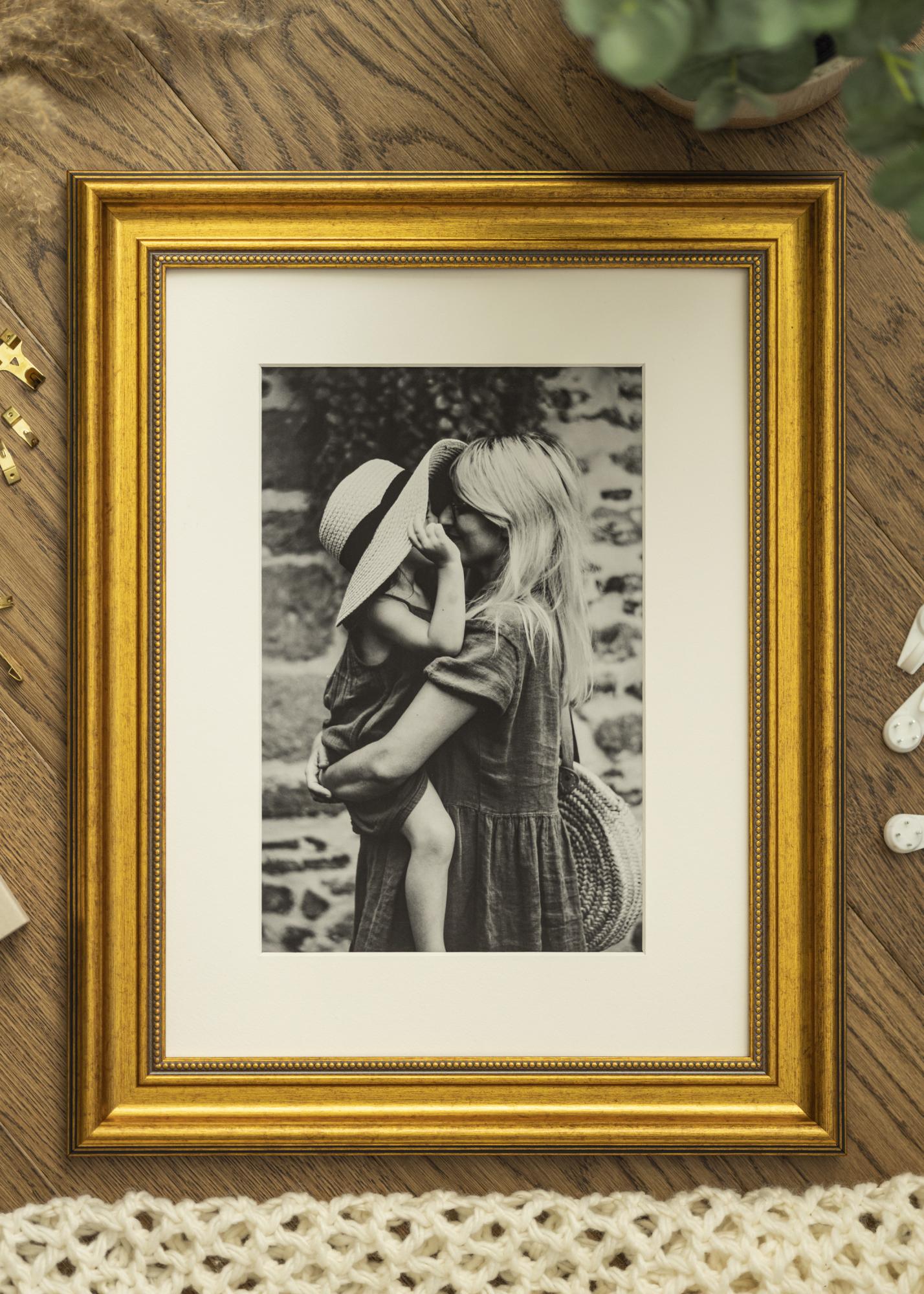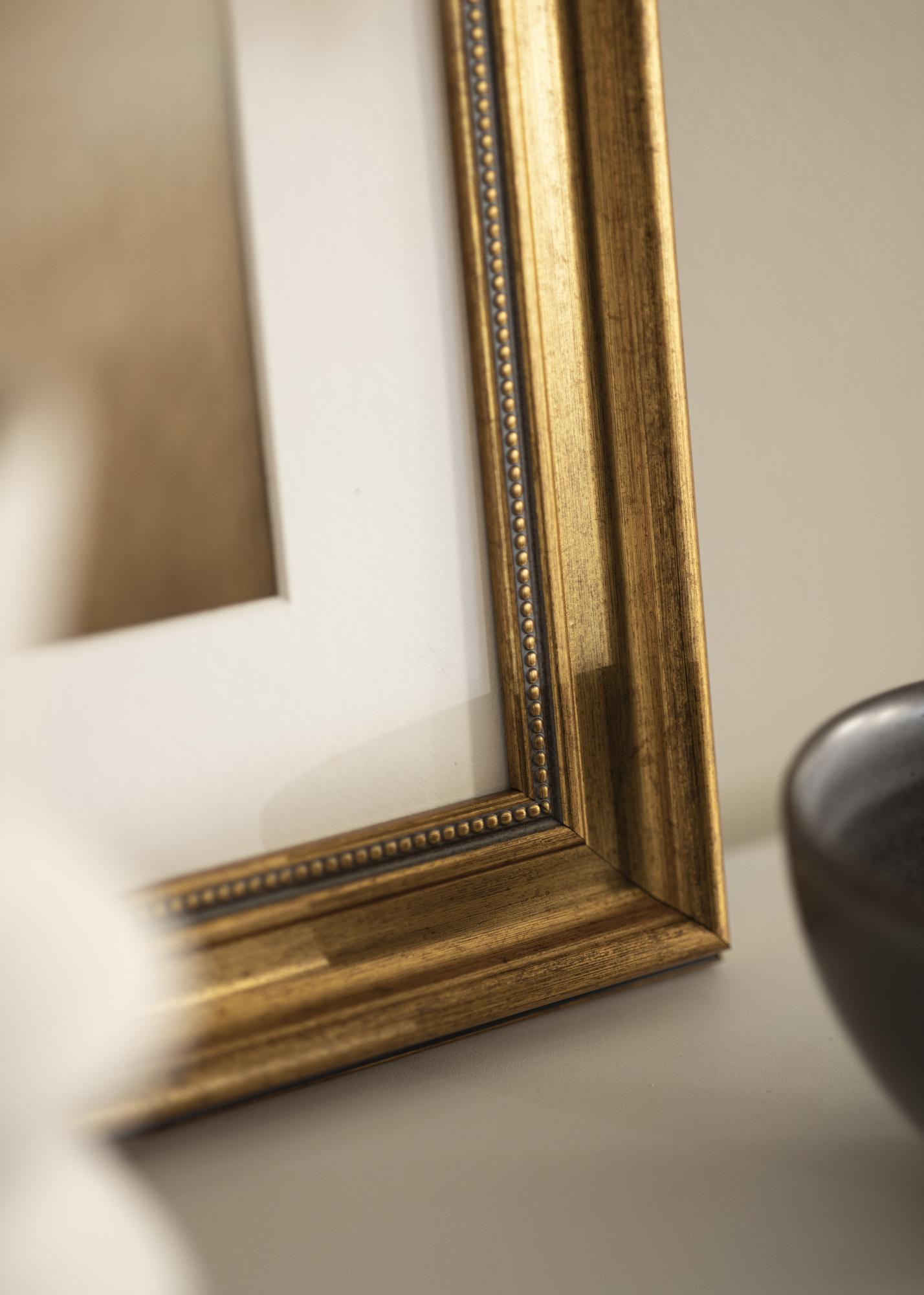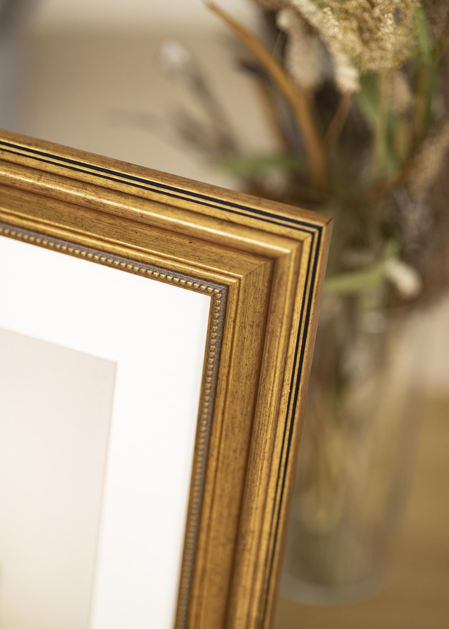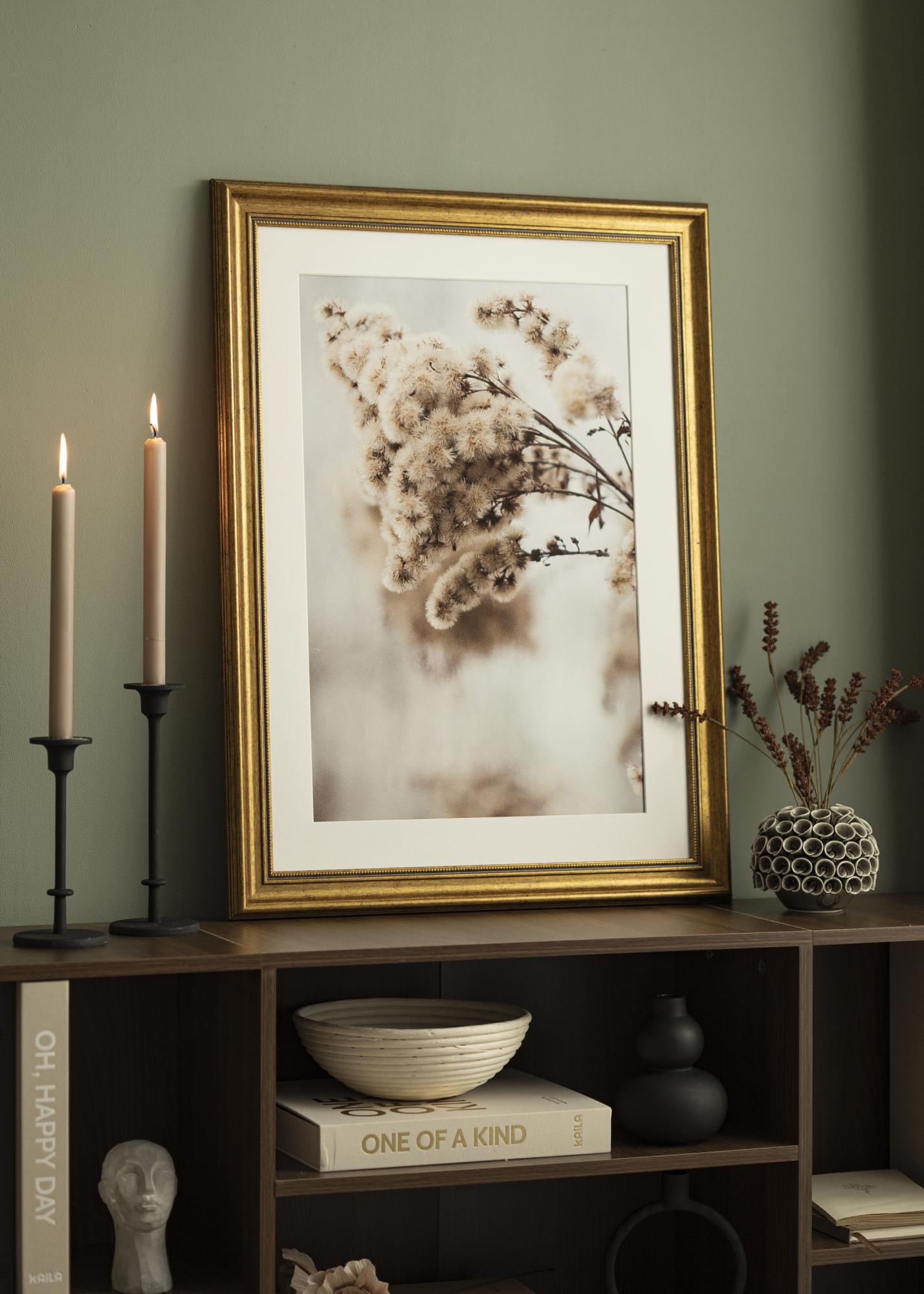 Rokoko on kullatud raam, mis annab sinu lemmikmotiividele suurepärase vintage-tunde. Raamil on 50 mm laiune riba läikivast antiikkullast tooniga ning kaunilt kulunud pind, mis tugevdab raami klassikalist välimust. Raam sobib nii isiklike fotode kui ka abstraktsete posterite jaoks – ja sõltumata sellest, millise motiivi sa valid, saad selle hõlpsasti paigaldada. Lihtsalt vabasta raami tagakülg, mida hoiavad paigal väikesed painduvad tihvtid, ja aseta oma seinakunst raami klaasi kõrvale.