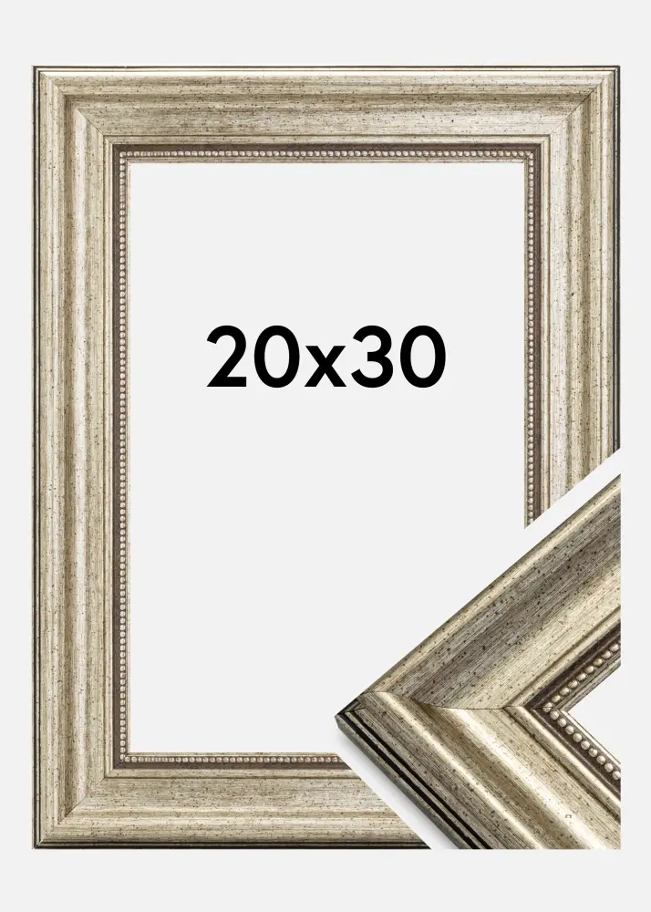 Rokoko on imeline hõbedane raam, millel on lai 50 mm profiil, ideaalne, kui otsite traditsioonilist fotoraami klassikalises stiilis oma kaunimate mälestuste jaoks.