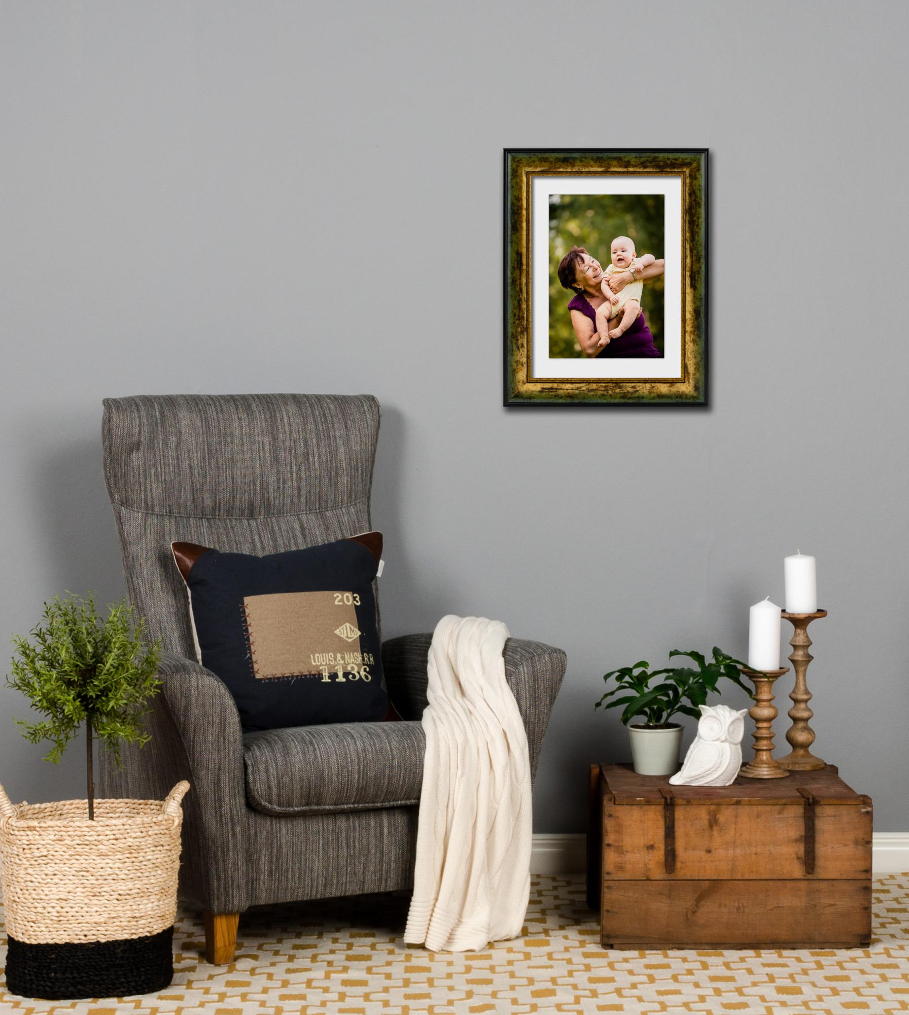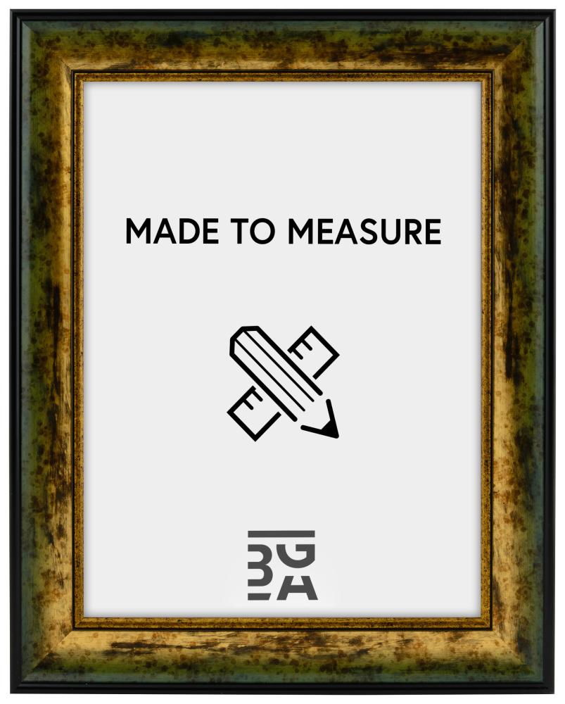 Harva oleme näinud nii põnevat disaini pildiraamil! Sellel suurepärasel raamil on mustad servad ja kuldne pind kulunud detailidega. Aseta oma kaunimad pildid sellesse ja saad iseloomuliku pildi, mis sobib kenasti nii vanamoodsasse interjööri kui ka boheemlaslikku. Kuna seda toodetakse meie enda raamikoja poolt sinu mõõtude järgi, võid olla kindel, et see sobib täpselt sinna, kuhu soovid.