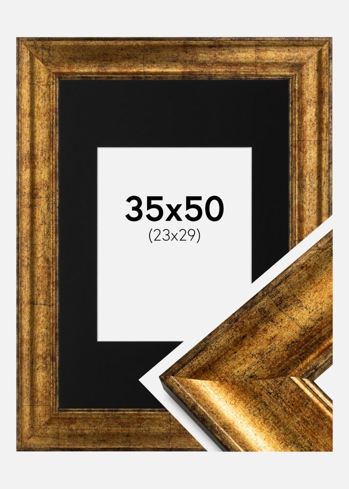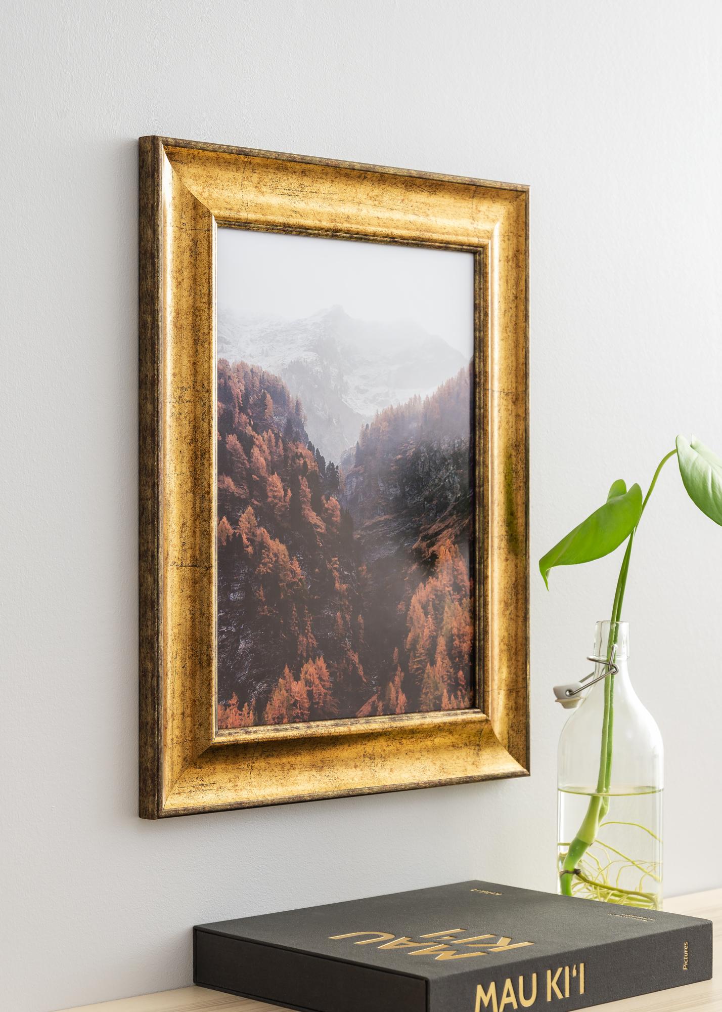 Muuda oma kunstiteos või foto elegantseks pilgupüüdjaks meie kuldraamiga, millel on must passepartuu. Raami matt kuldtoon täiendab musta passepartuud ja loob peene kontrasti, mis toob esile sinu pildi suuruses 24x30 cm. Suuremeelne laius 64 mm annab tugeva ja luksusliku tunde, samas kui sügavus 23 mm lisab iseloomuliku profiili.