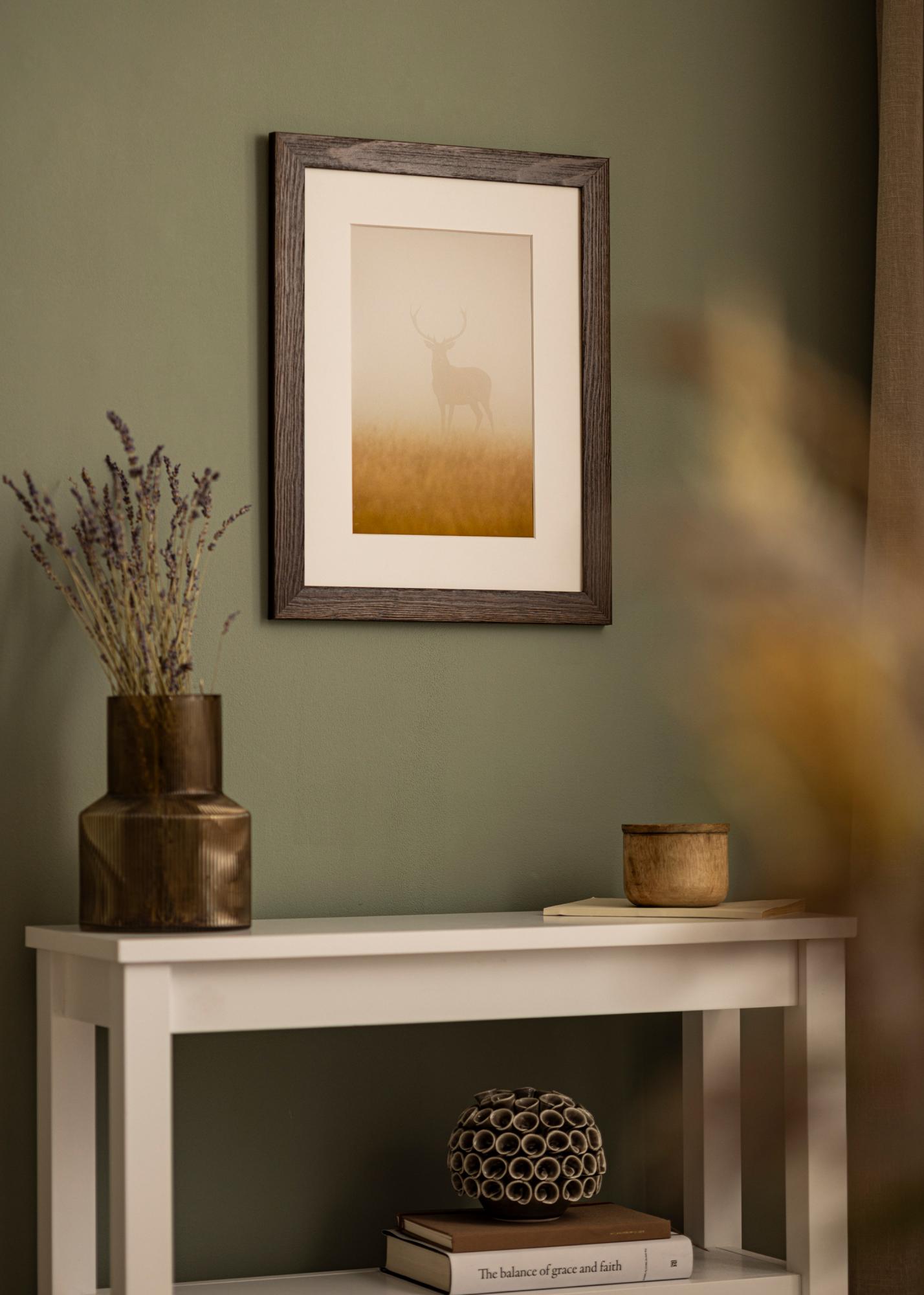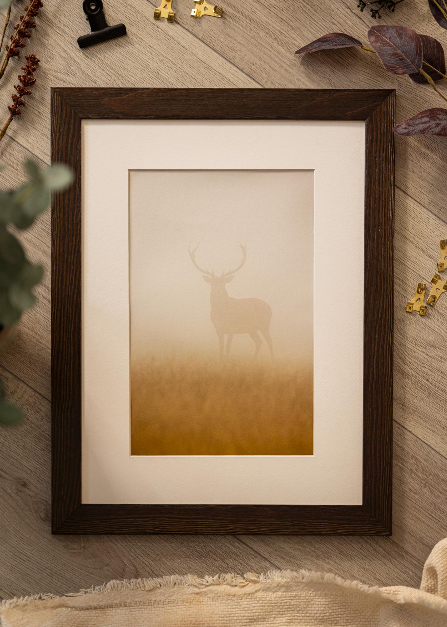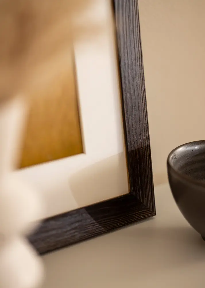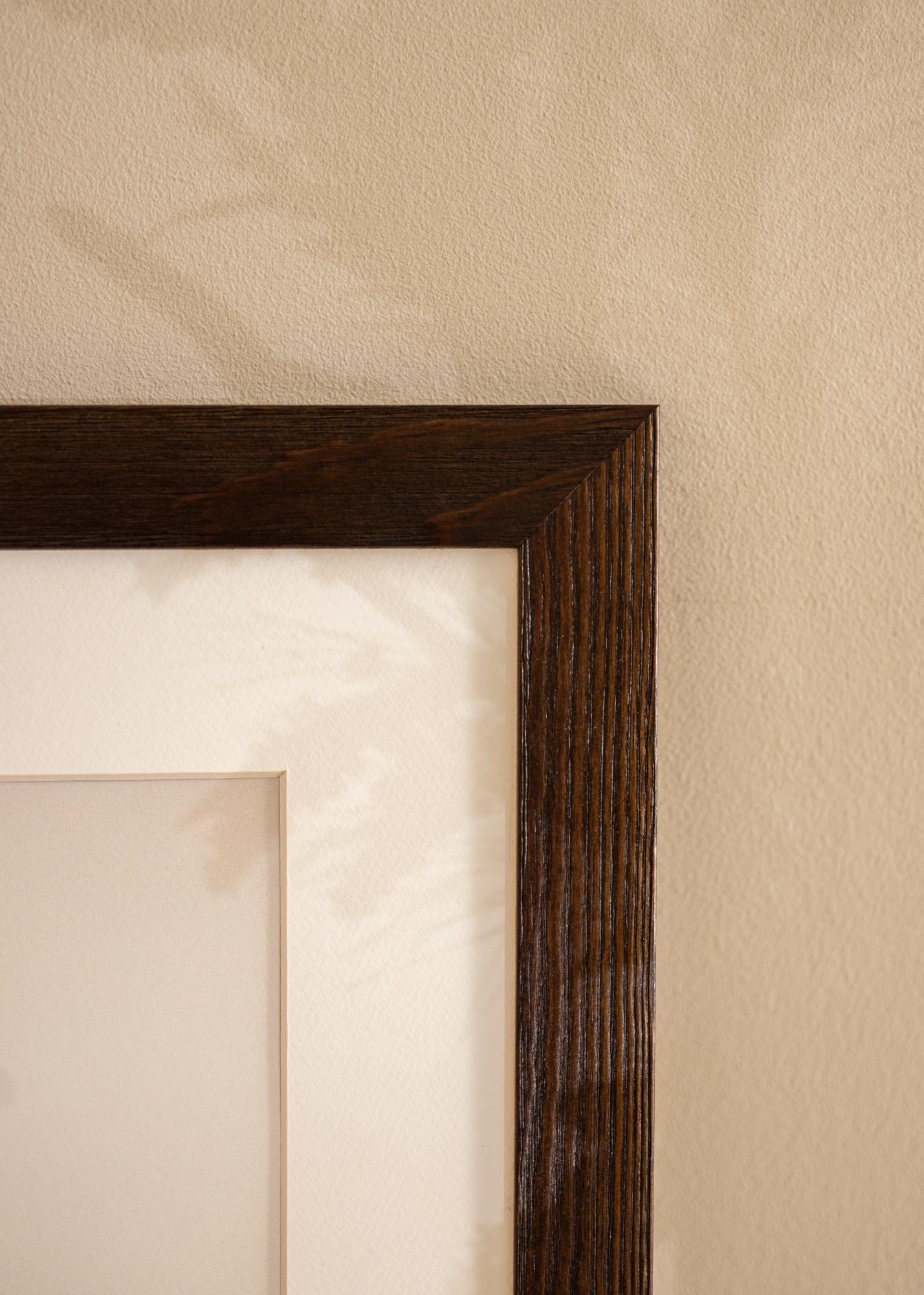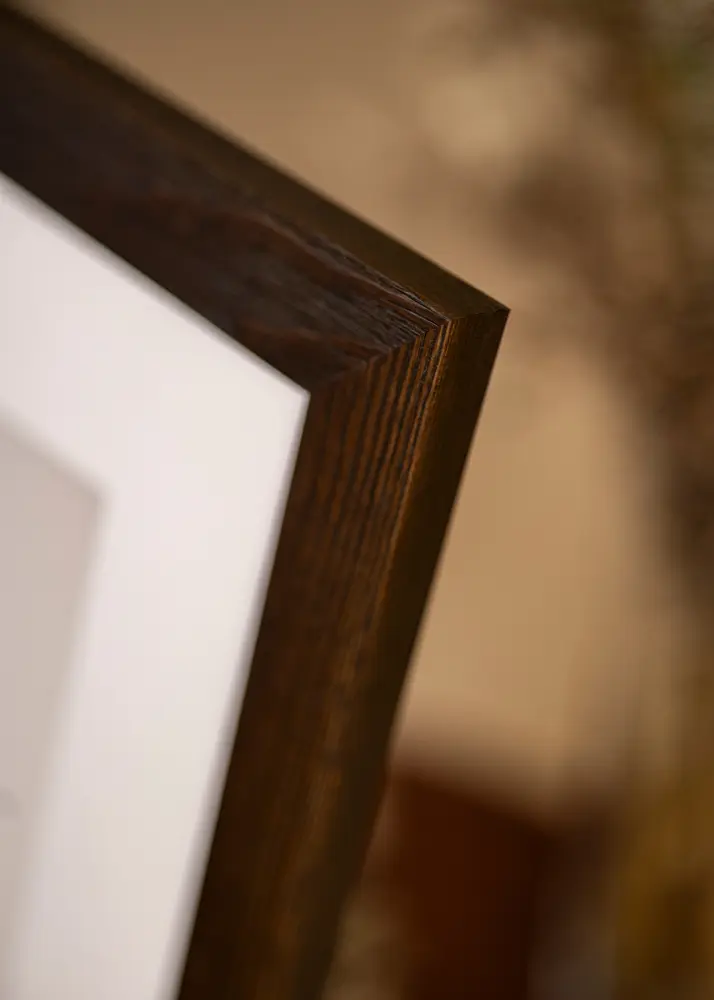 Vastupidav pruun puidust raam, millel on nähtavad puidumustrid ja lai profiil. Sobib hästi, kui otsid tumedat puidust raami loomuliku tundega. Ideaalne keskkonnapiltide ja maastikupiltide jaoks.