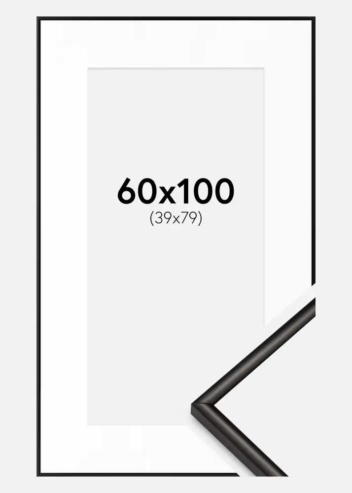 Raam Scandi Matt Must 60x100 cm - paspartuu Valge 40x80 cm