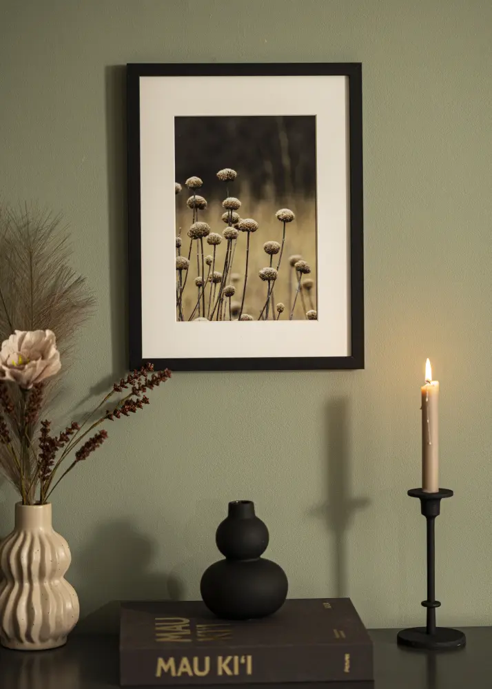Mustad raamid on klassikud põhjusega - neid on lihtne sobitada erinevate sisustusstiilidega ning need on ilusaks täienduseks eri värvi motiividele. See variant on varustatud akrüülklaasiga, mis on kerge ja purunemiskindel klaas kristallselge teravusega. Raami liist on 18 mm lai ja 18 mm sügav ning sellel on stiilne ruudukujuline profiil.