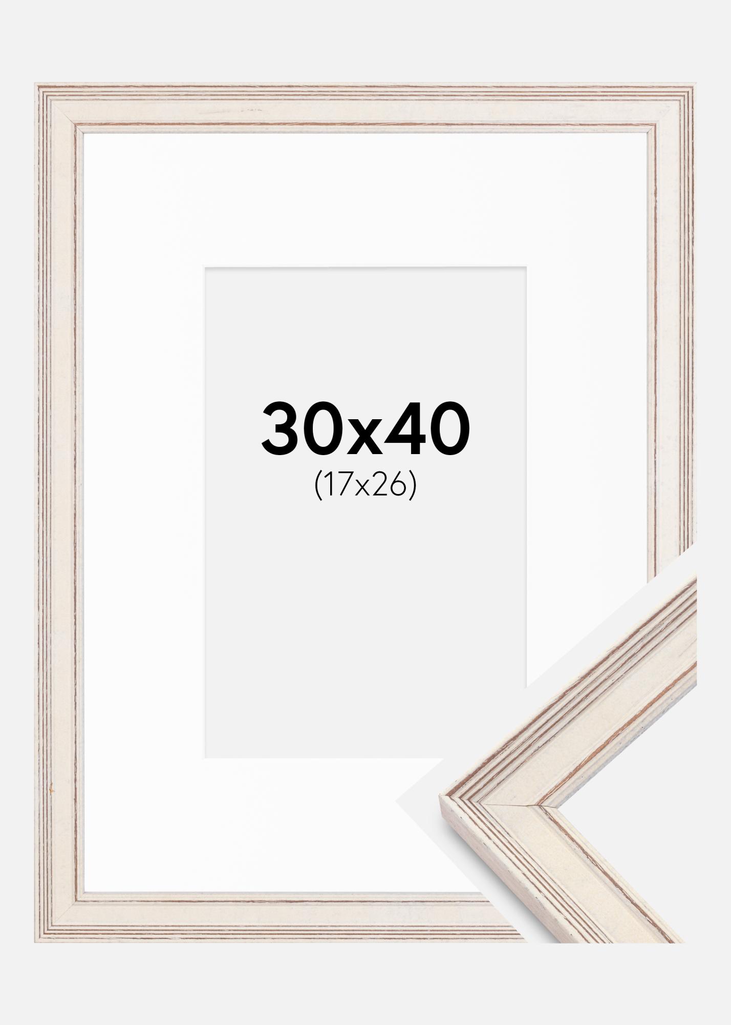 Raam Shabby Chic valge 30x40 cm - paspartuu valge 18x27 cm