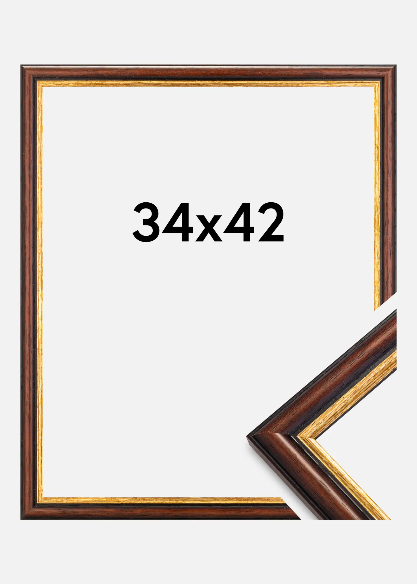 Lase sellel raam olla kaunis sisekujunduselement sinu kodus. Raam on valmistatud Rootsis, kvaliteetsest ayopuidust, mis on värvitud sooja pruuni värviga. Pruun toon täiustatakse elegantse kuldse triibuga sinu pildi juures, et anda lisaks elegantsele üldmuljele. Raamil on klassikaline välimus, mida saab hõlpsasti sobitada paljude erinevate motiividega. Võib-olla soovid seda kasutada koos klassikalise fotoga, et tõsta esile traditsioonilist tunnet? Või saab see pildiraam ägedaks kontrastiks mõnele kaasaegsemale motiivile?