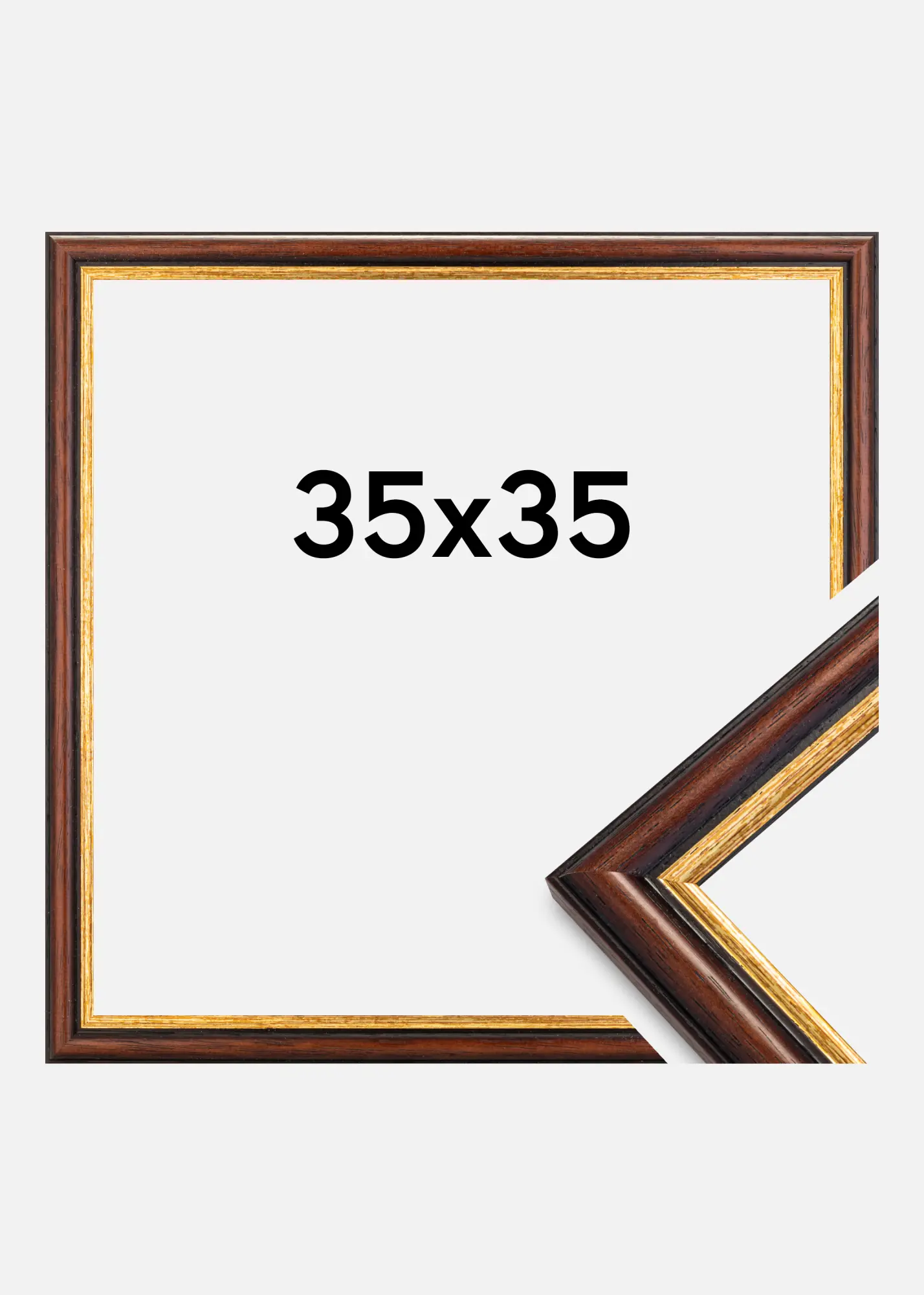 Las see raam olla ilus sisekujunduselement sinu kodus. Raam on valmistatud Rootsis kvaliteetsest ayopuidust, värvitud sooja pruuni tooniga. Pruuni tooni täiendab elegantne kuldne joon sinu pildi lähedal, et anda lisaks elegantset üldmuljet. Raamil on klassikaline välimus, mida on lihtne sobitada paljude erinevate motiividega. Võib-olla soovid seda kasutada koos klassikalise fotoga, et tõsta esile traditsioonilist tunnet? Või saab see pildiraam olema huvitav kontrast kaasaegsema motiiviga?