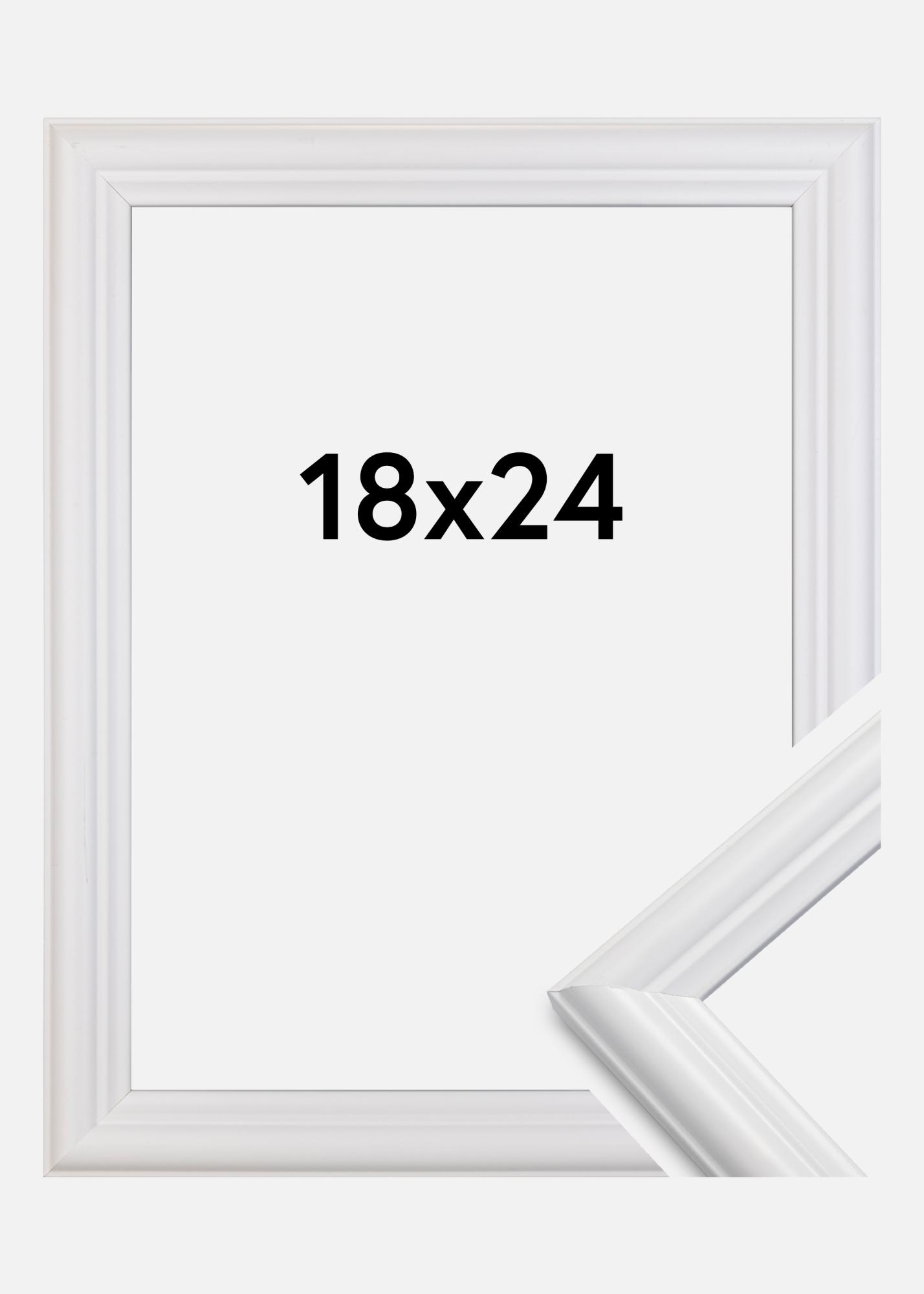 Siljan Raam Valge 8B omab klassikaliselt kujundatud puidust liistu, mis on värvitud valgeks.