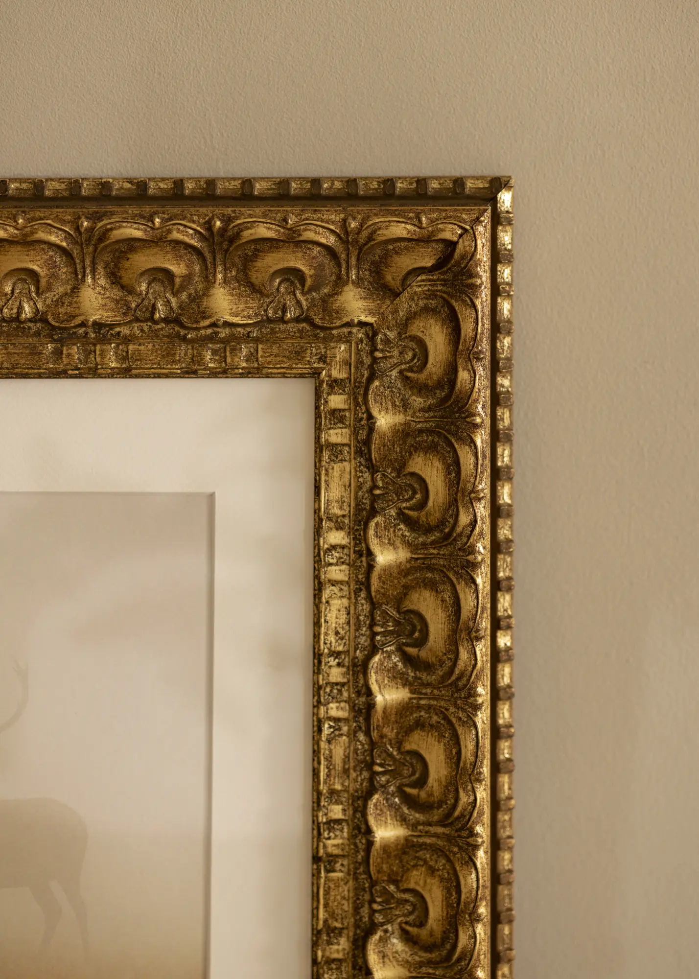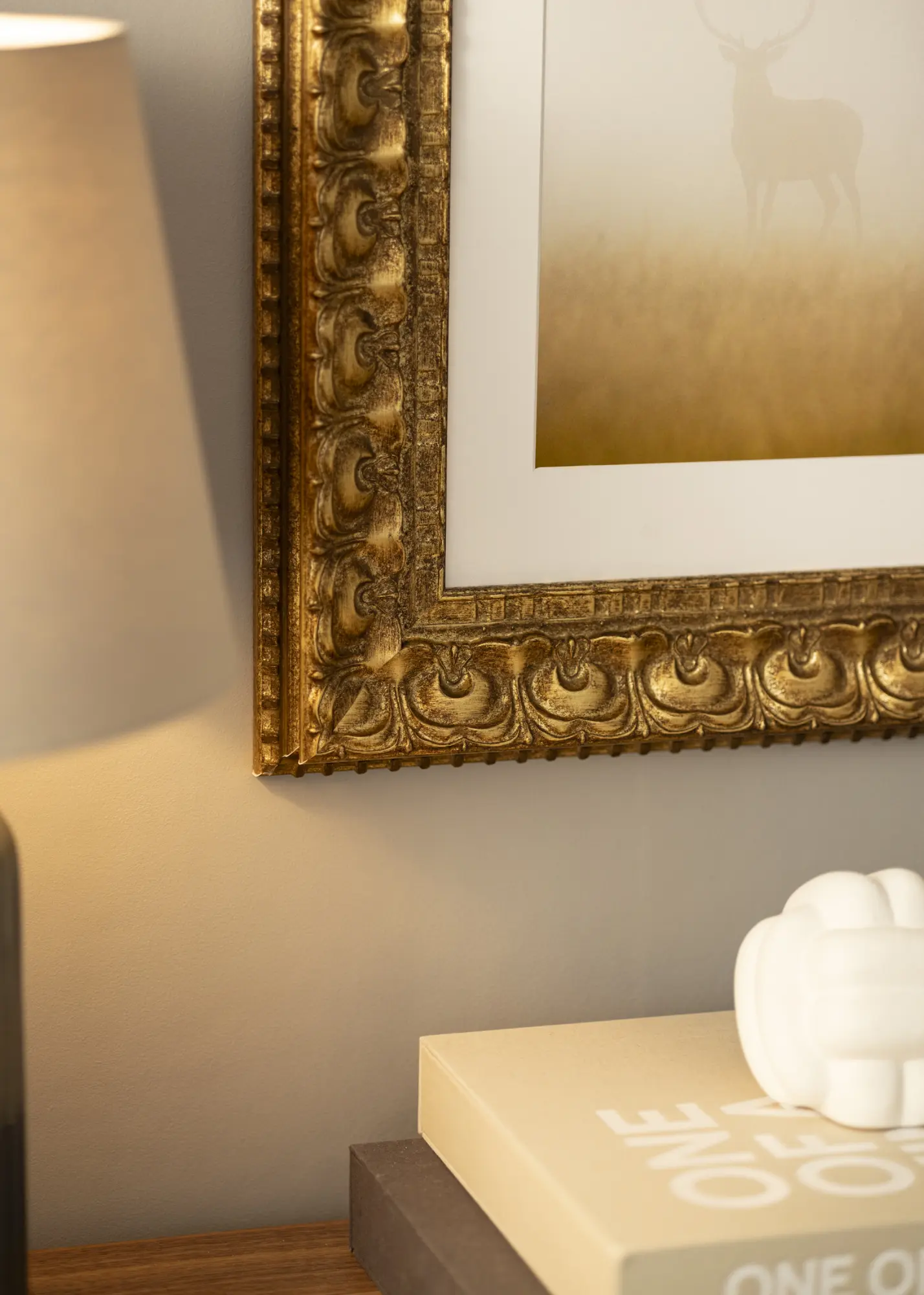 Muutke oma pildid kunstiteosteks meie eksklusiivse Skokloster Guld pildiraamiga. See fotoram on loodud selleks, et anda teie mälestustele elegantne raamistik oma klassikalise kulla viimistluse ja rikkalikult kaunistatud profiiliga. Antiikne välimus on tugevdatud patineeritud pinnaga, mis annab raamile ajatult ja peenelt tunde, mis sobib ideaalselt nii kaasaegsetesse kui ka traditsioonilistesse keskkondadesse.