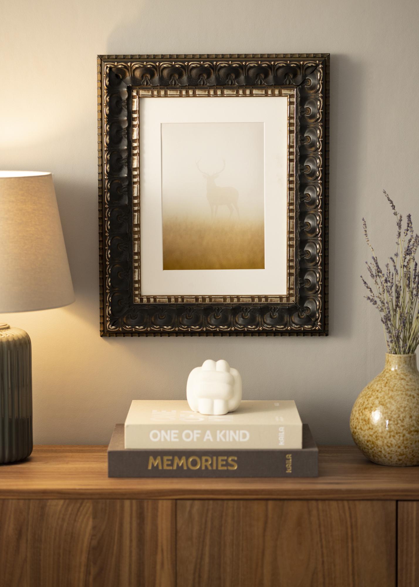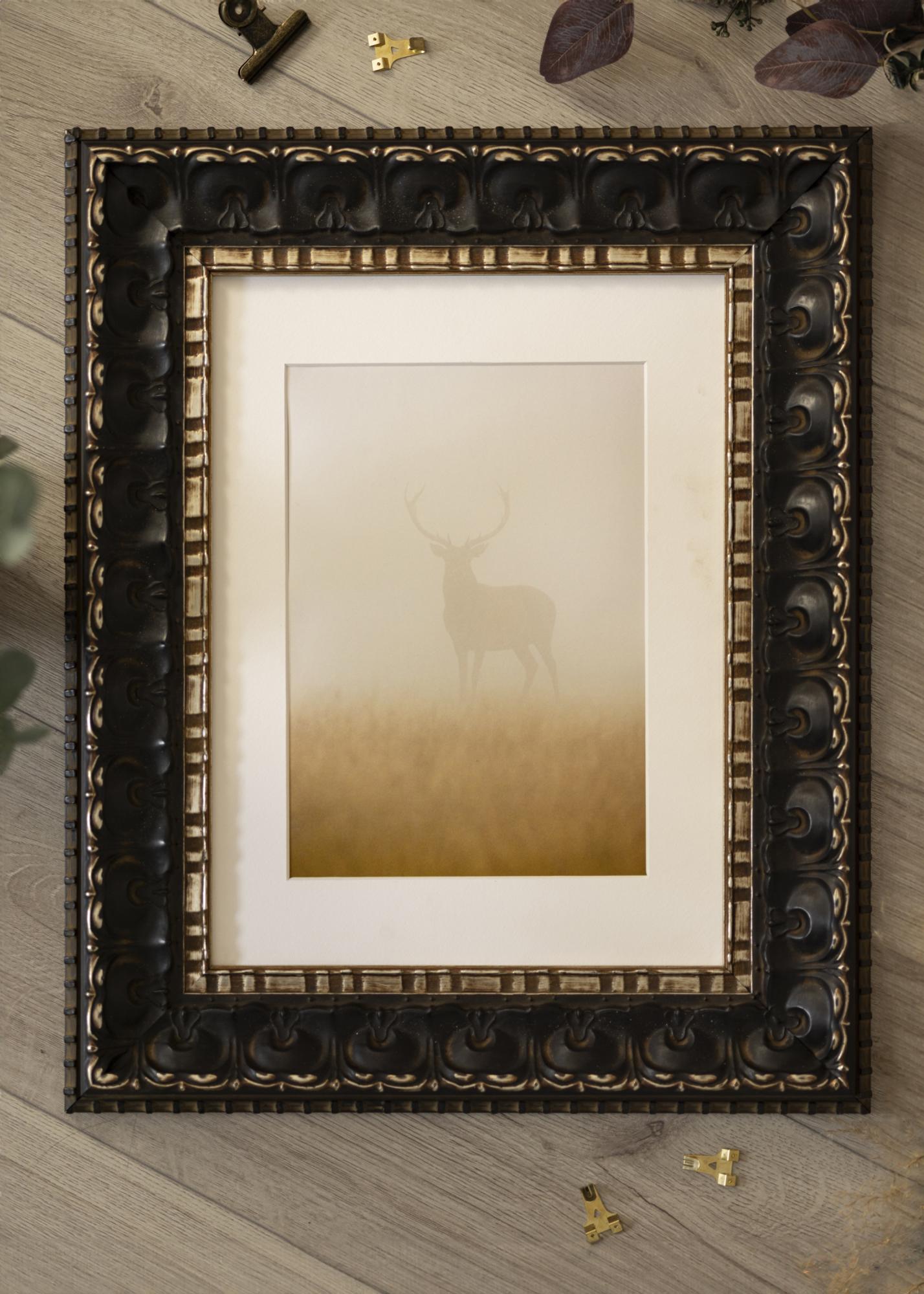 Raam Skokloster Must on ideaalne lahendus neile, kes otsivad elegantset ja klassikalist raami oma piltide või kunstiteoste jaoks. Oma sügava musta aluse ja antiiksete kulladetailidega pakub see pildiraam rafineeritud ja luksuslikku tunnet, mis sobib igasse koju. Üksikasjalikud mustrid piki servi tugevdavad selle ajatut disaini ja annavad antiikset võlu.