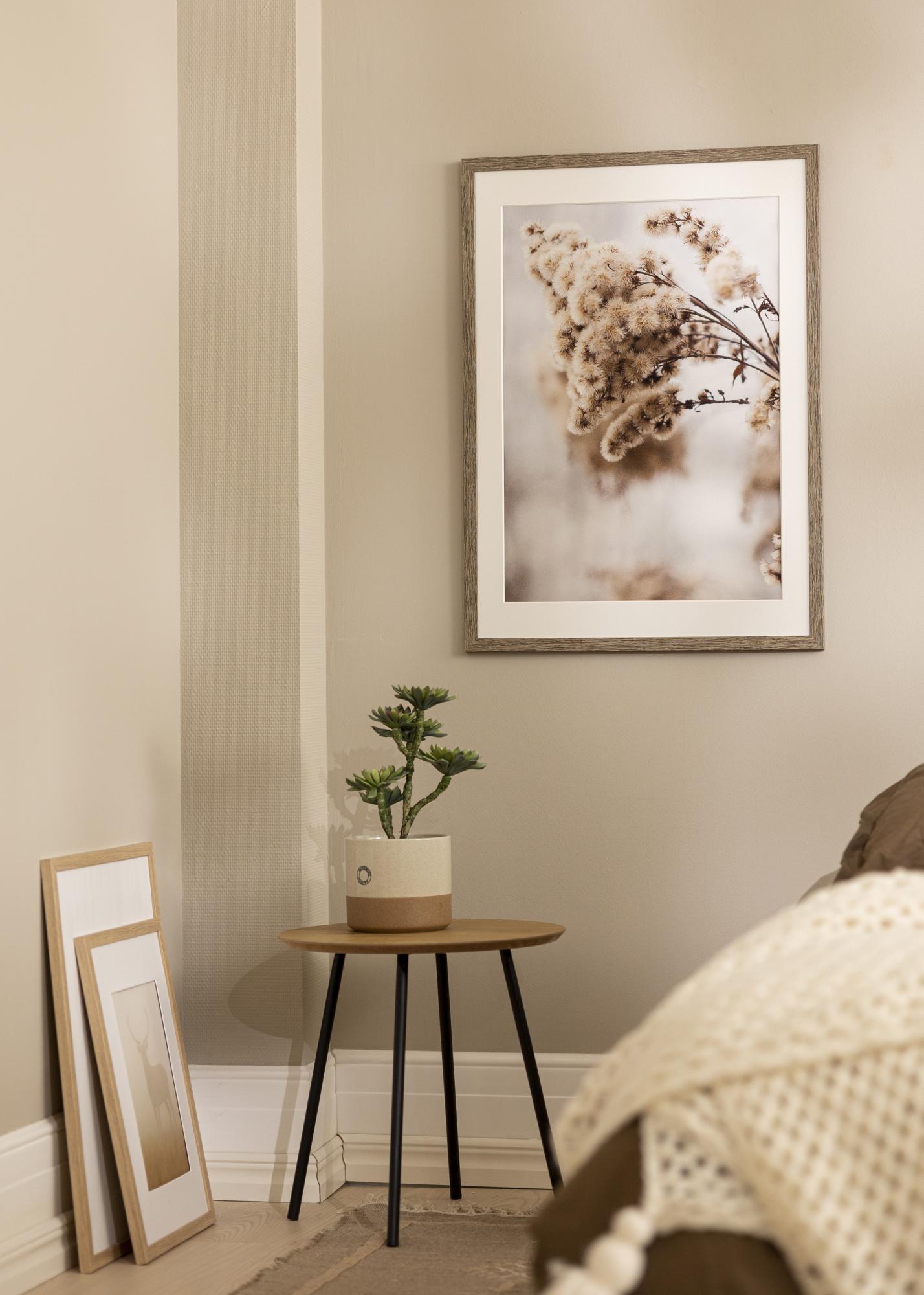Andke oma plakatitele ja kunstiteostele tähelepanu, mida nad väärivad, stiilse halli tamme pildiraamiga. Mõõtmetega 42x59,4 cm (A2) sobib see raam täiuslikult teie A2 formaadis plakatite esiletõstmiseks loomuliku elegantsi puudutusega. Raamilaua laius 20 mm annab diskreetse raamistiku, ilma et see võtaks fookuse motiivilt.