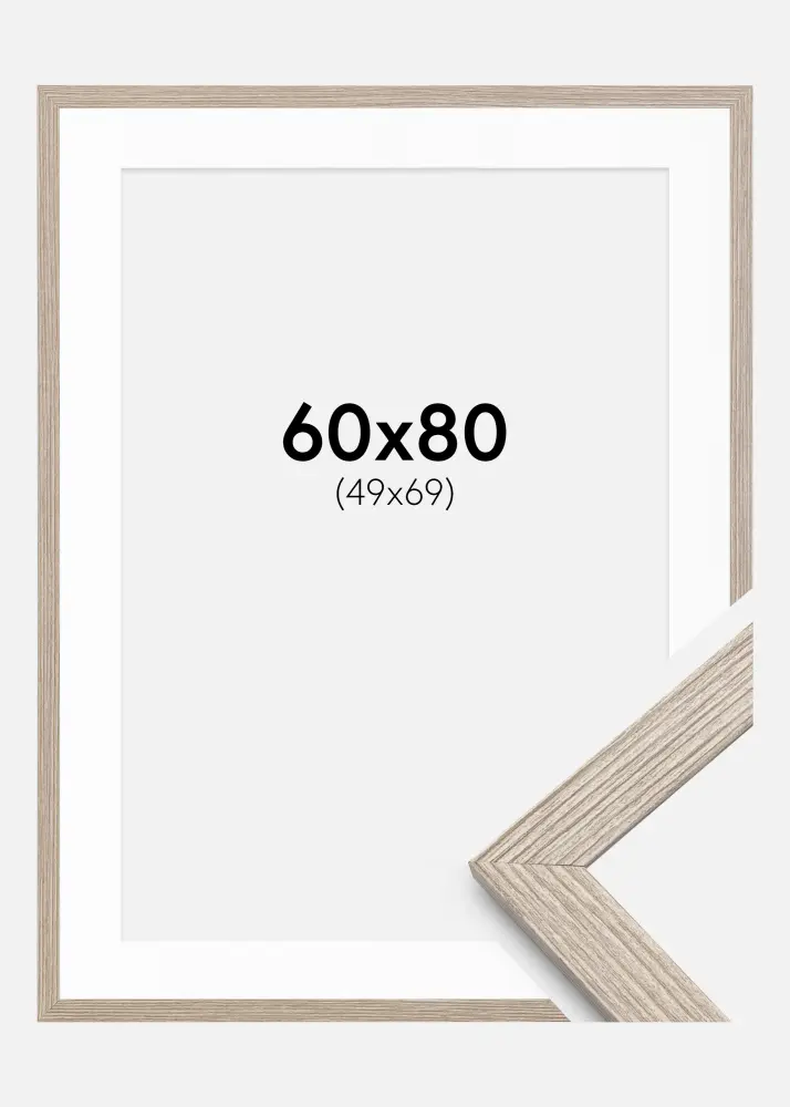 Raam Stilren Greige tamm 60x80 cm - paspartuu Valge 50x70 cm