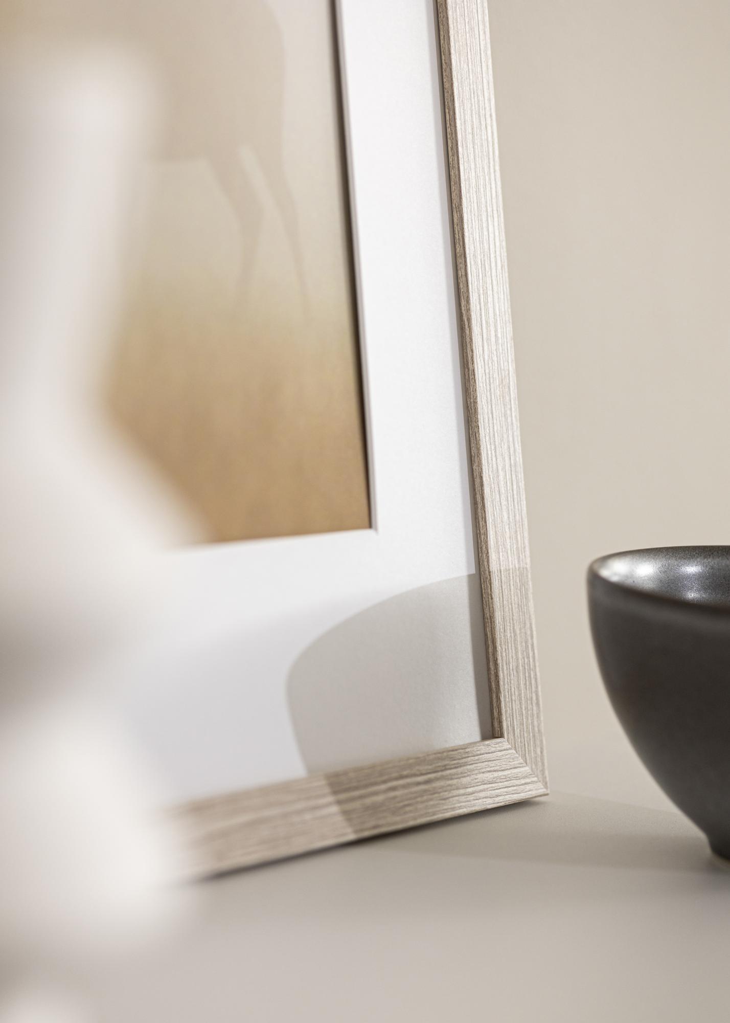 See on stiilne kvaliteetne raam, mis on valmistatud männipuidust ja ehtsast klaasist. Sellel šikil raamil on greige tamme toon, mis annab teie motiivile trendika raamistuse. Stiilne Greige Oak on saadaval mitmes erinevas suuruses, nii et saate neid omavahel kenasti sobitada, just see sobib 30x40 cm fotodele. See on pildiraam, mida saate selle külge kuuluva seinakinnitusega riputada nii püst- kui ka horisontaalasendis. Raamiserv mõõdab 20 mm sügav ja 14 mm sügav.