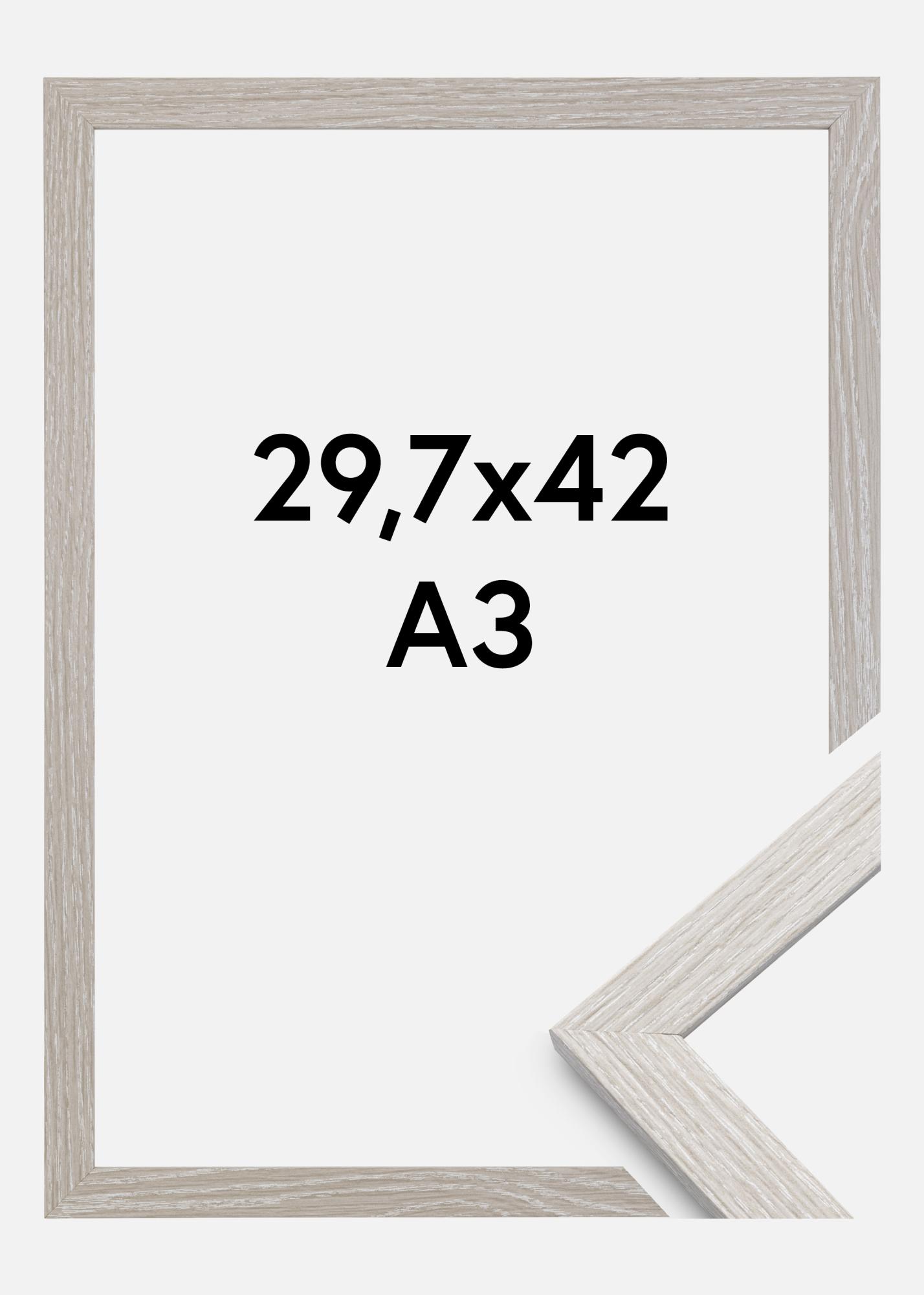 Stilren Light Grey Oak on stiilne puidust raam ainulaadses heledas hallis toonis. Raamilatt, mille sügavus on 20 mm ja laius 14 mm, on valmistatud männist. Tagaküljel on seinakinnitused, mis võimaldavad teie raami riputada nii püsti kui ka pikali asendis. Raamilati hästi tasakaalustatud mõõtmed koos ilusa halli tammetooniga toovad kenasti välja teie teema ja omavad tõelist klaasi, mis kaitseb teie pilti. Riiuli Stilren raame on saadaval mitmes erinevas värvitoonis ja suuruses, et saaksite hõlpsasti leida just selle, mida otsite. Selle raamimiõõtmed on 29,7x42 cm ja see sobib A3-suuruses fotodele.