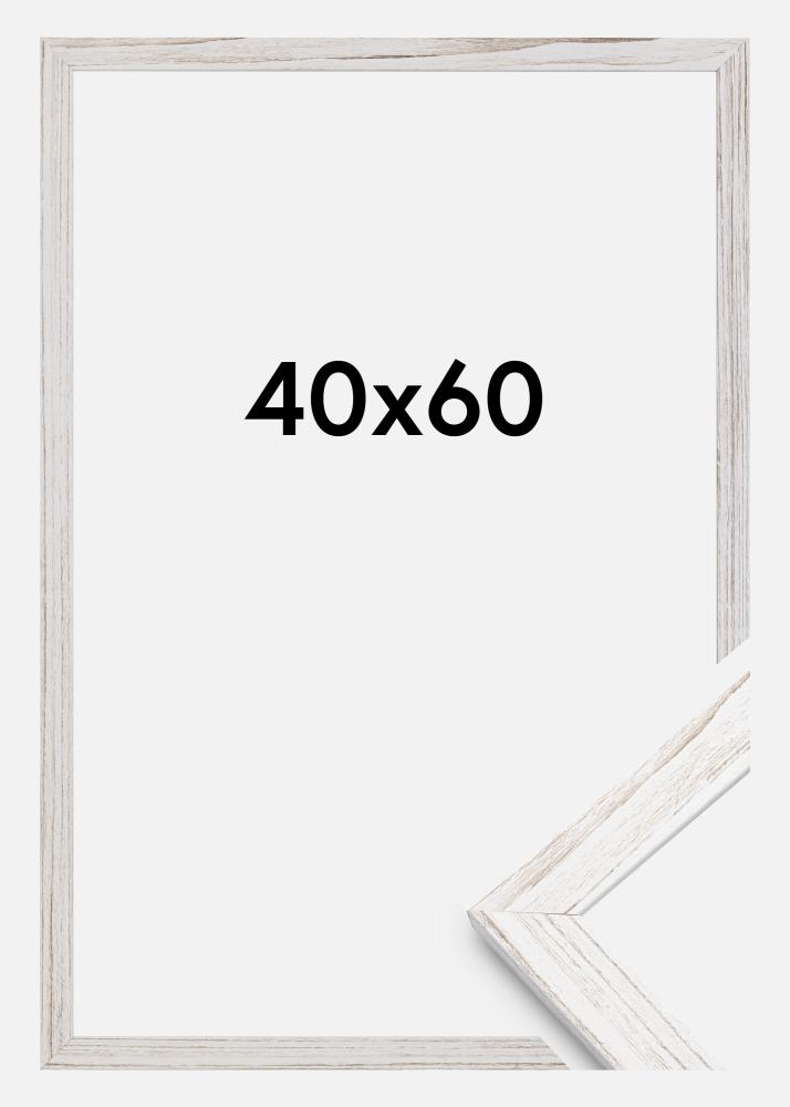 See on retrodisainiga raam. Raam on valge tooniga pruunikate nüanssidega, mis annavad sellele raamile veidi rustikaalsema tunde. Raamiserv on 20 mm lai ja 14 mm sügav. Raam on valmistatud männipuidust ja sellel on tõeline klaas. Vintage White on saadaval paljudes erinevates suurustes, mida saate omavahel kenasti sobitada. See pildiraam on 40x60 cm.