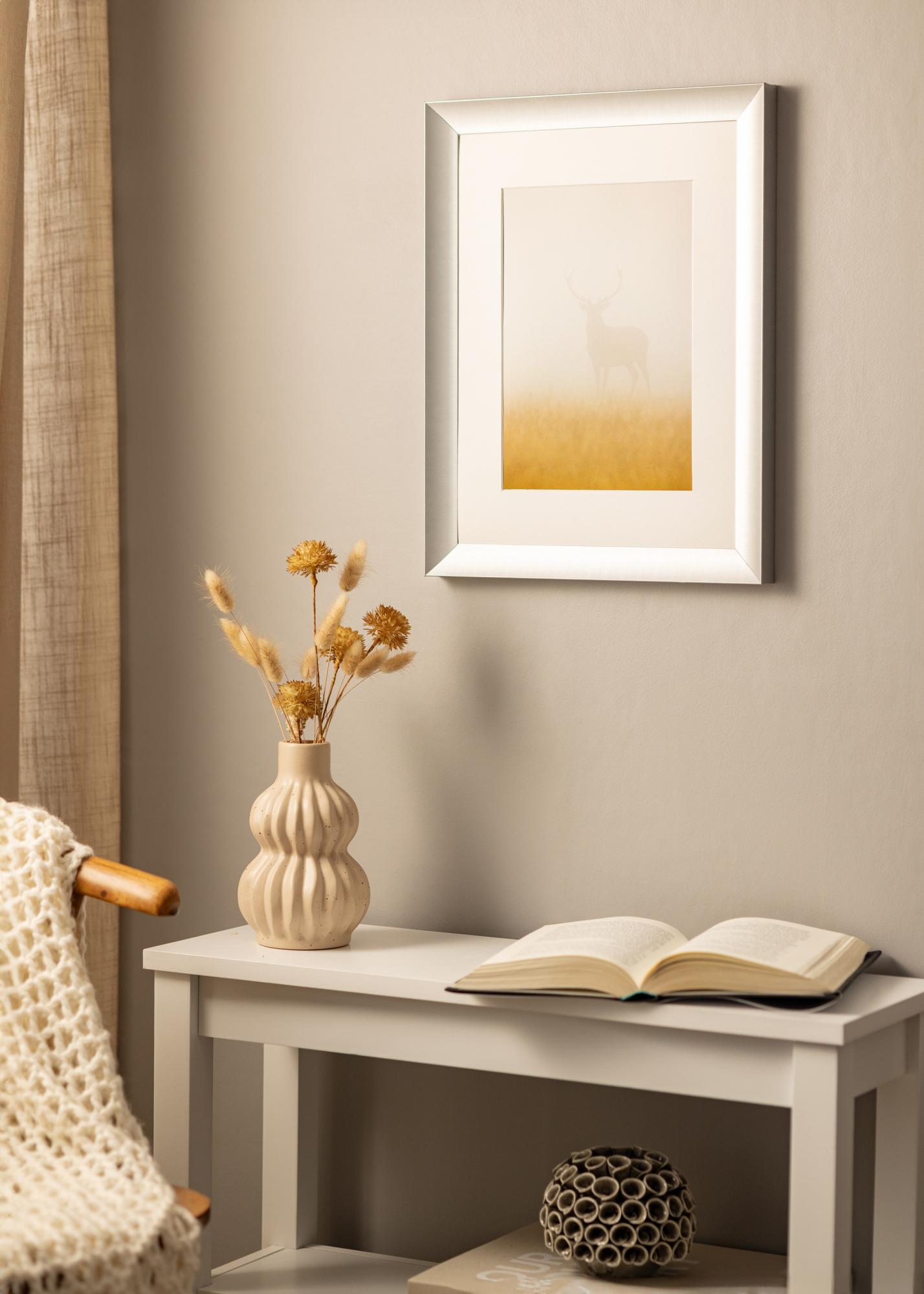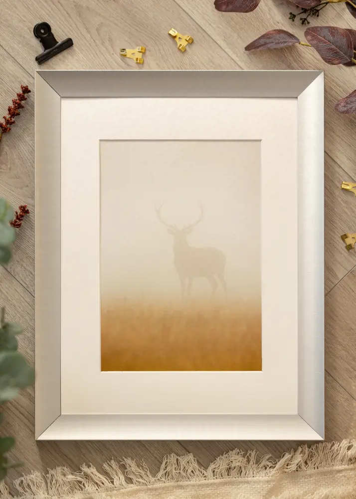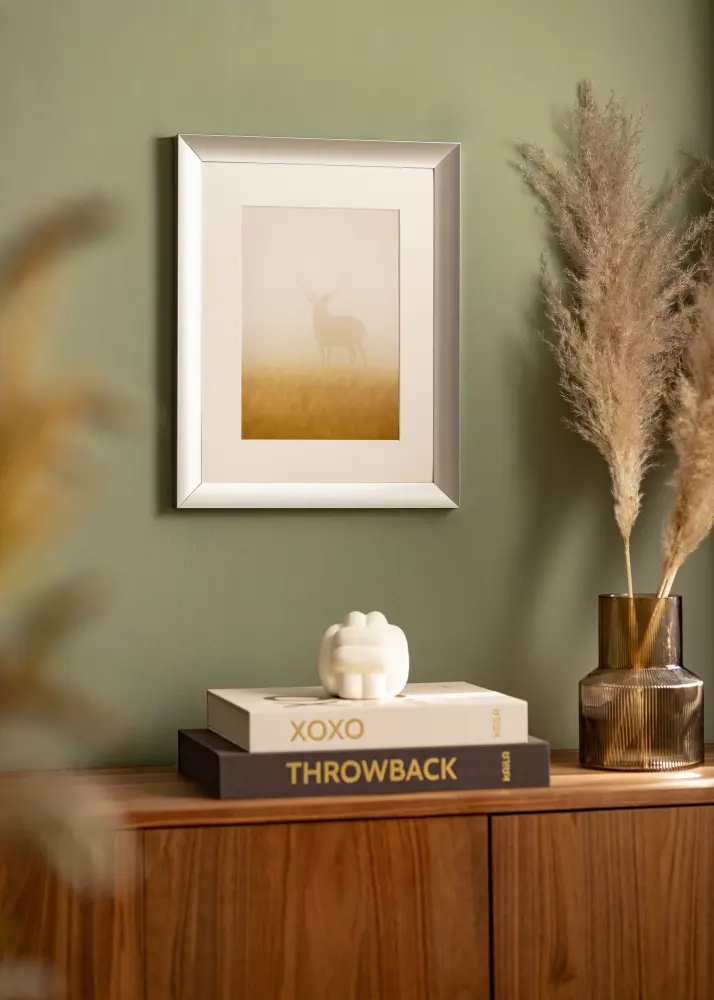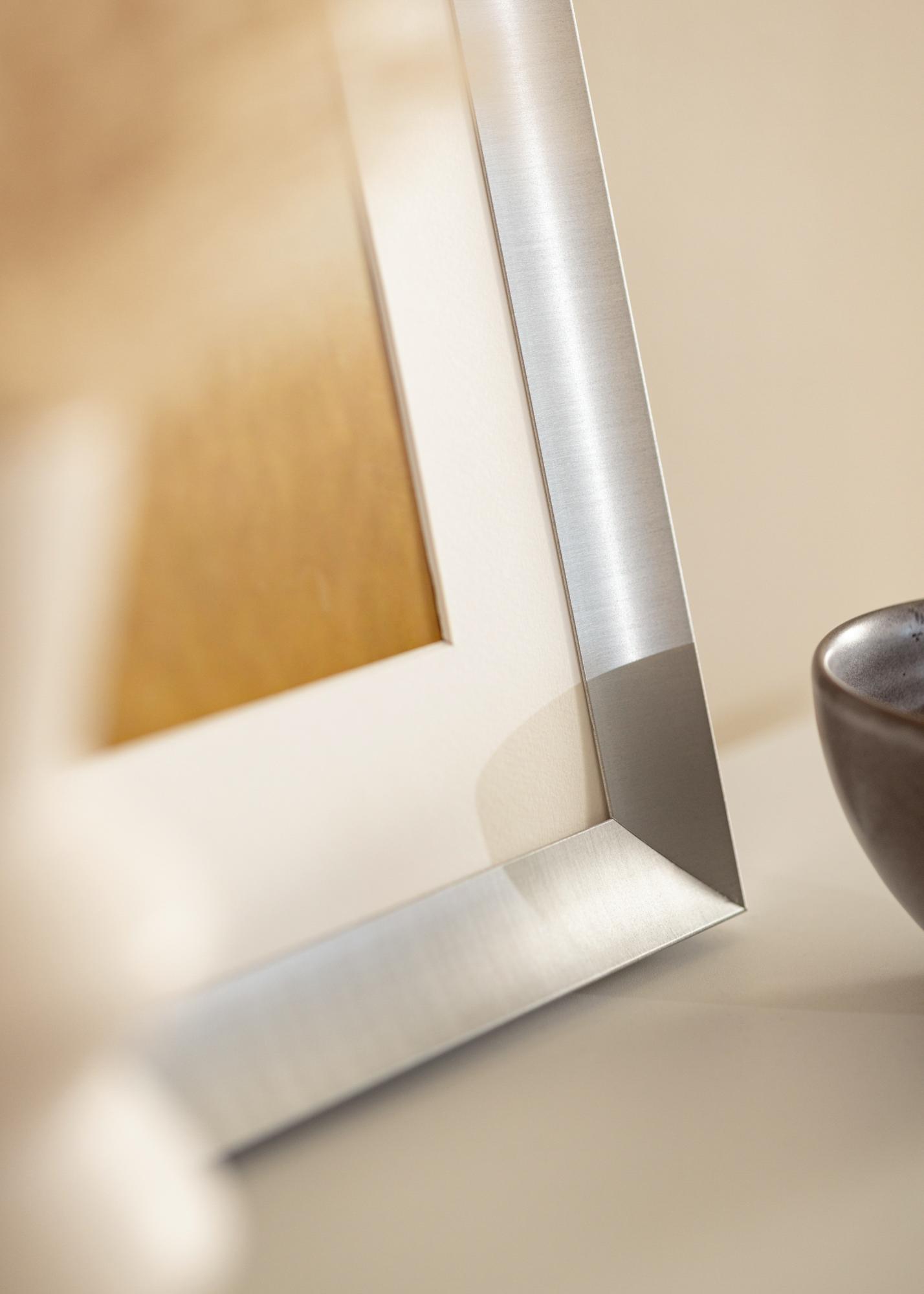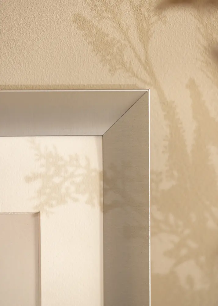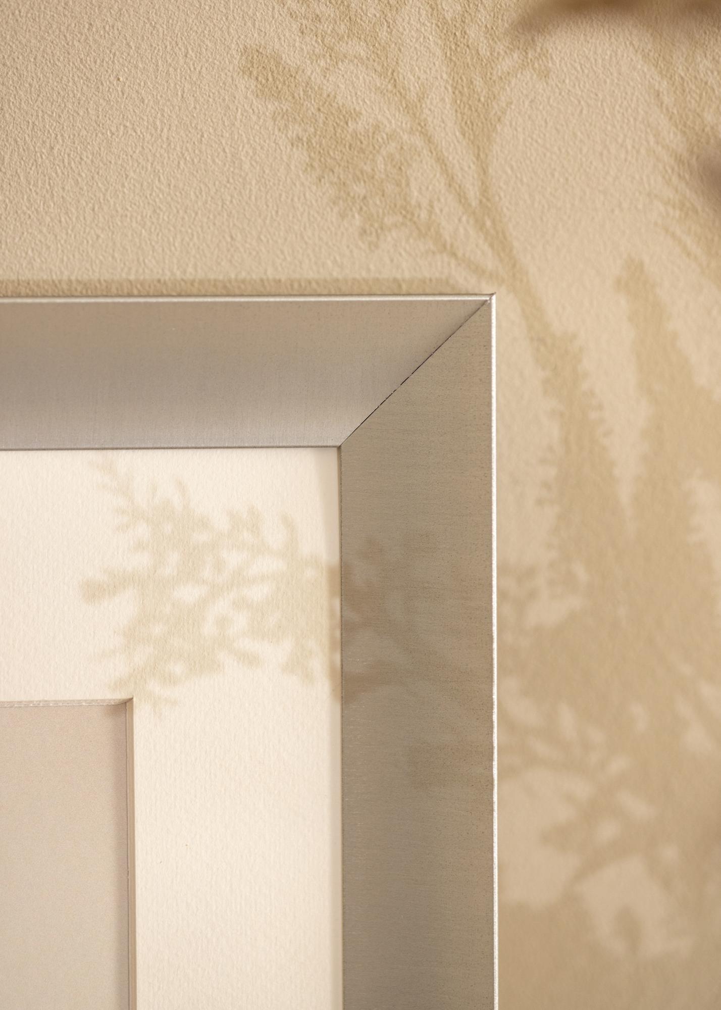 Elegantne pildiraam poolmati hõbedavärviga. Täiesti sobiv raamimiseks mustvalgeid fotosid ja halltoone, kuid kõik pildid näevad raamiga head välja. Stiilne välimus koos diskreetse hõbedase värviga teeb raami sobivaks igasuguse sisekujunduse ja keskkonna jaoks, kuid jääroosa, jaheda rohelise või pastellseinte taustal paistab pildiraam eriti hästi välja. Täienda sisustust hõbeesemete ja mustvalgete graafiliste detailidega.
