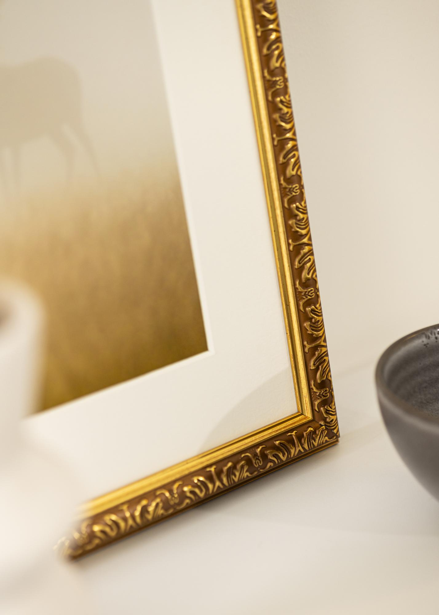 Muuda oma mälestused kunstiteoseks selle elegantse kullavärvi raamiga, millel on stiilne valge paspartuu. See raam sobib ideaalselt sinu lemmikfotode esiletoomiseks suuruses 21x29,7 cm (A4) ja annab neile pilkupüüdva ning peene raamistuse.