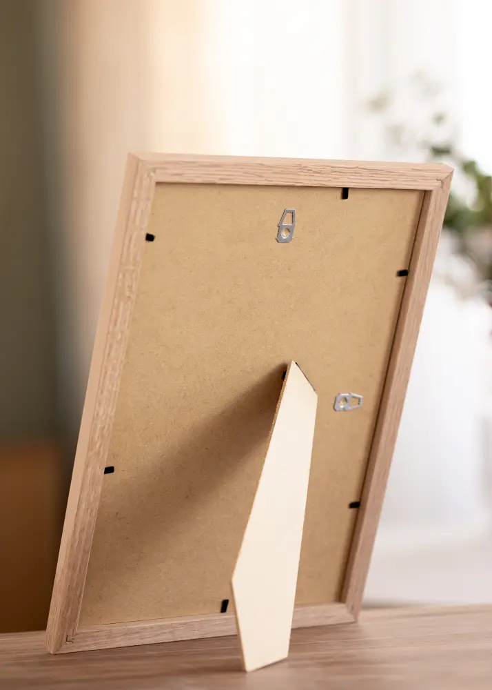 Raam on kohandatud 21x29,7 cm (A4) suuruste motiivide jaoks, muutes selle ideaalseks teie lemmikfotode või kunstiteoste esitlemiseks. Raamil on 20 mm lai ja 15 mm sügav liist, mis annab sellele robustse ja kindla tunde. Tagumisel küljel on metallist riputid, mis võimaldavad lihtsat rippumist nii horisontaalselt kui ka vertikaalselt, olenevalt sellest, mis sobib teie ruumiga kõige paremini.