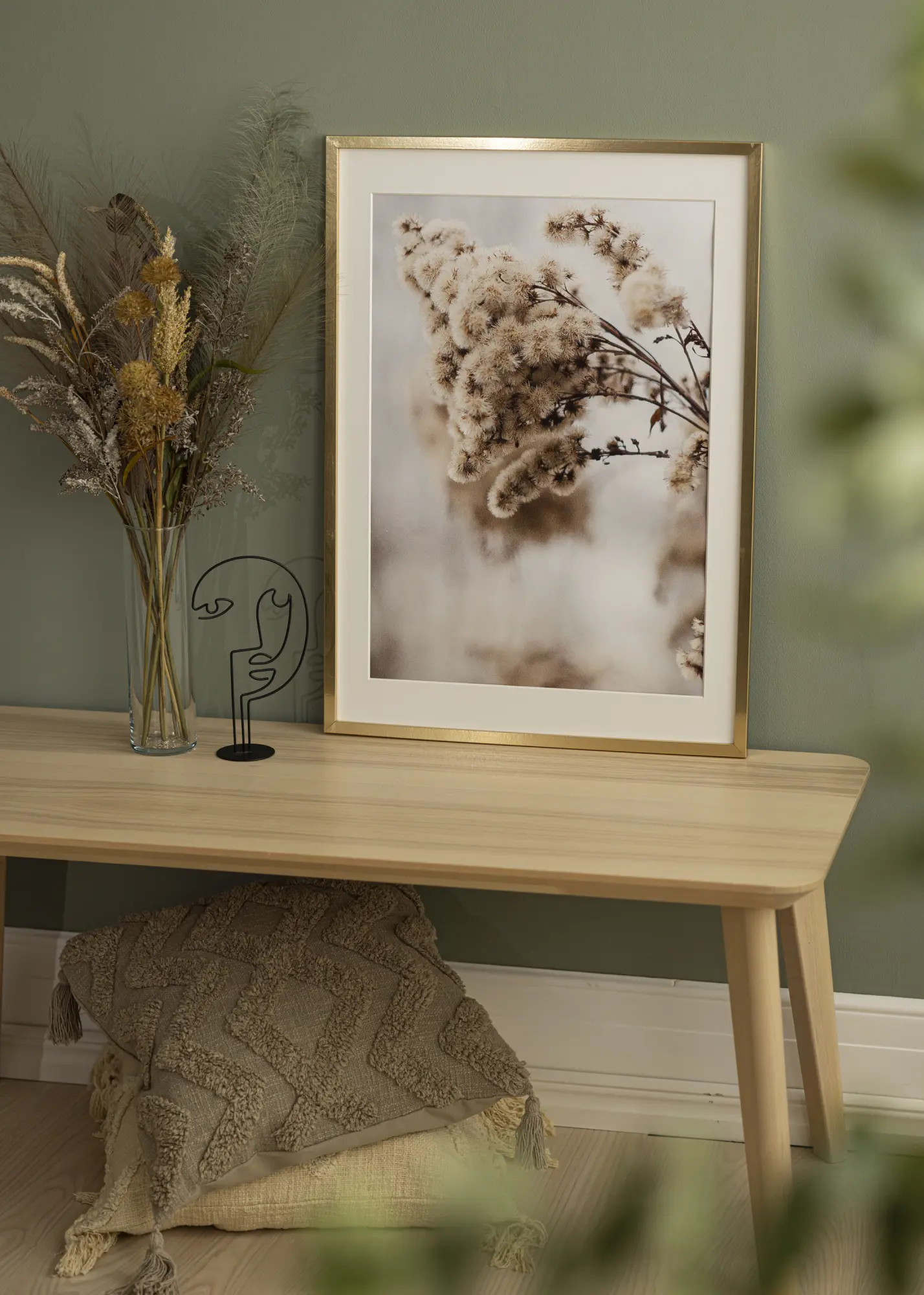 Riiuliraam, mille laius on 14 mm, annab sellele 21x29,7 cm suurusele raamile eristuva, kuid siiski peene teose raamistuse. Paigaldamine on lihtne tänu painduvatele tiftidele ning eelkinnitatud metallkonksudega tagaküljel on teie uus kuldraam koheselt valmis seinale riputamiseks. Olenemata sellest, kas otsite üksikut fotoraami või mitut kogu loomiseks, on see soodne ja mitmekülgne raam saadaval mitmes suuruses, et täita kõik teie raamistamistarbed.