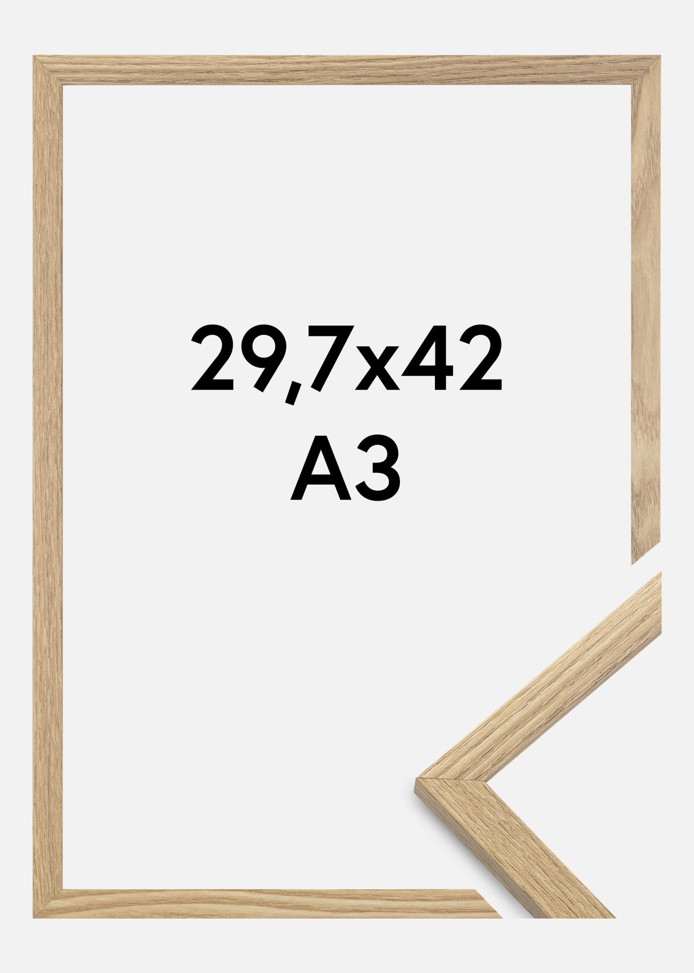 Raam on valmistatud MDF-materjalist, millel on tammevärvi fooliumitud pind ja sellel on kitsas 14 mm raamiprofiil. Ruumi on piisavalt, et täiendada oma pilte luksusliku paspartuuga, tänu raami sisemisele sügavusele (liistude sügavus) 12 mm.
