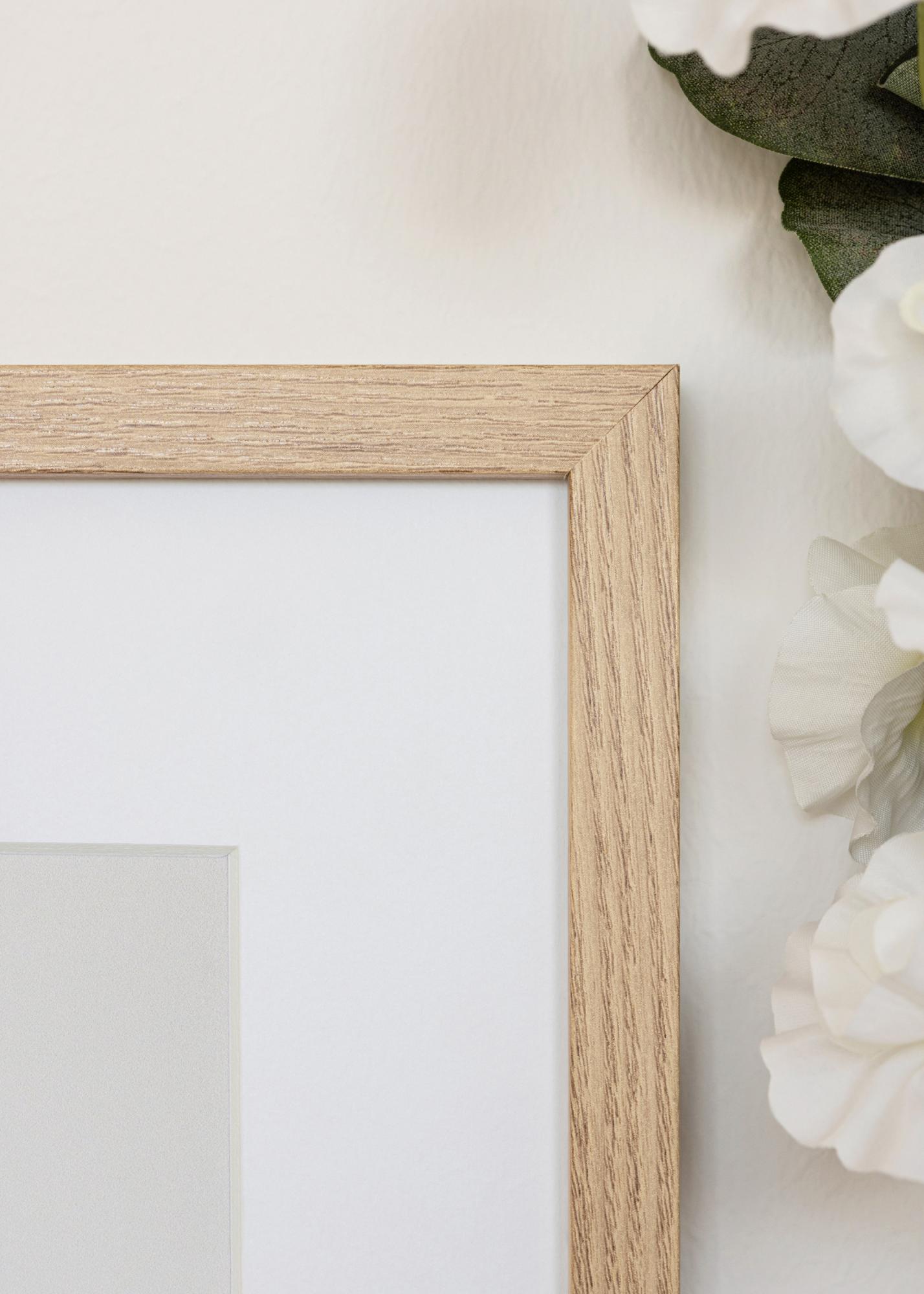 Raam on valmistatud MDF-materjalist ja sellel on fooliumiga tammevärviline pind ning raamprofiil on 14 mm. Piisavalt ruumi on, et täiendada oma pilte luksusliku paspartuuga, tänu raami sisemisele sügavusele (soonisügavus) 12 mm.