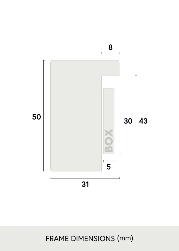 Raamil on 31 mm laiune raamiliist, mis annab stabiilse ja tugeva tunde, olles samas piisavalt diskreetne, et mitte võtta üle tähelepanu kujutiselt. 50 mm sügavusega loob see pildiraam kauni dimensioonilise efekti, mis toob pildi maitsekalt esile. Valmistatud värvitud männipuidust, kombineerib see vastupidavuse ja esteetika, tehes sellest pikaajalise lisanduse teie koju.