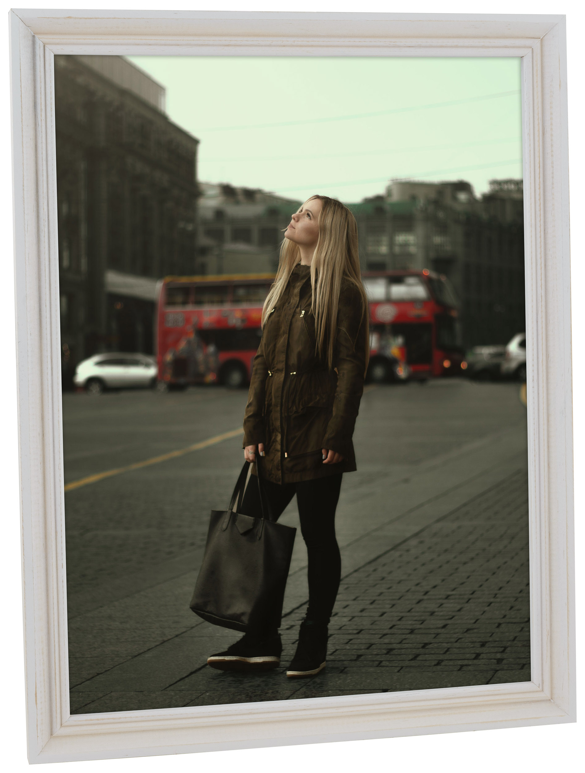 Kui sulle meeldivad isikupärased esemed, siis siin on suurepäraselt kulunud pildiraam, mis annab sinu fotodele vintage-tunde. Raam on valmistatud puidust ja sellel on klassikaline profiil. See on värvitud valgeks ja töödeldud, et näida vananenud. Täiuslik raam, mida kasutada, kui soovid esile tõsta näiteks vana fotot või raamida enda loodud kaunistusi.