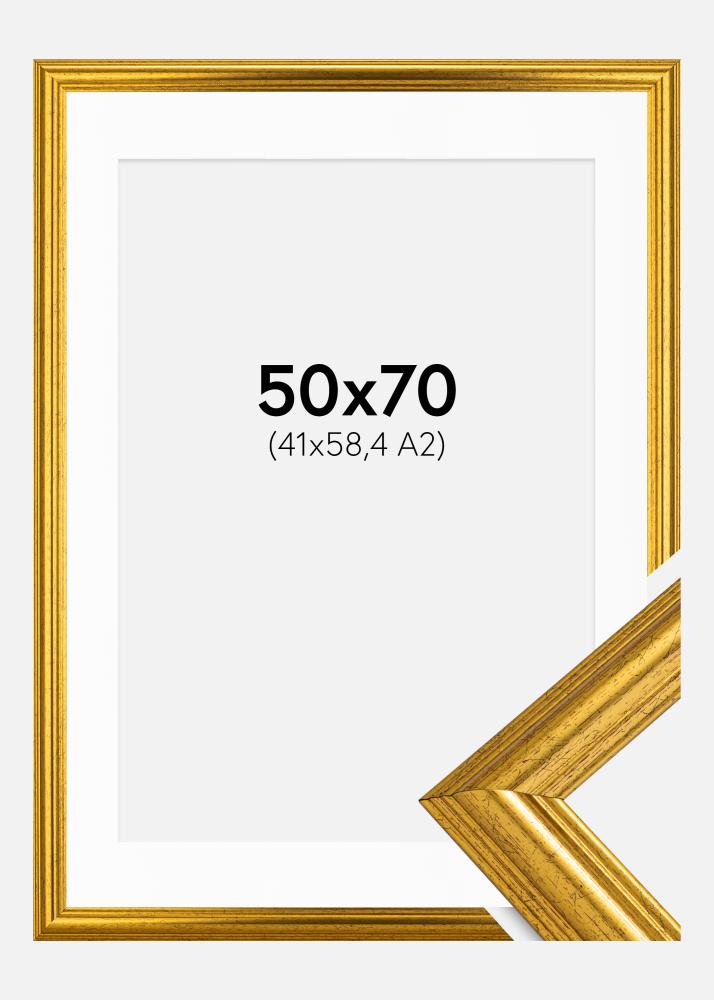 Raam Västkusten kuldne 50x70 cm - paspartuu valge 42x59,4 cm (A2)