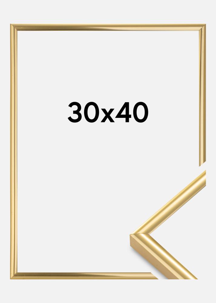 See on pildiraam, mille kitsas raamilist ja läikiv kuldne värv annavad sinu piltidele moodsa ilme. See sobib suurepäraselt abstraktsete printide või trendika fotokunsti raamimiseks – ja kui valid klassikalisemaid motiive, saab raam stiilseks kontrastiks.
