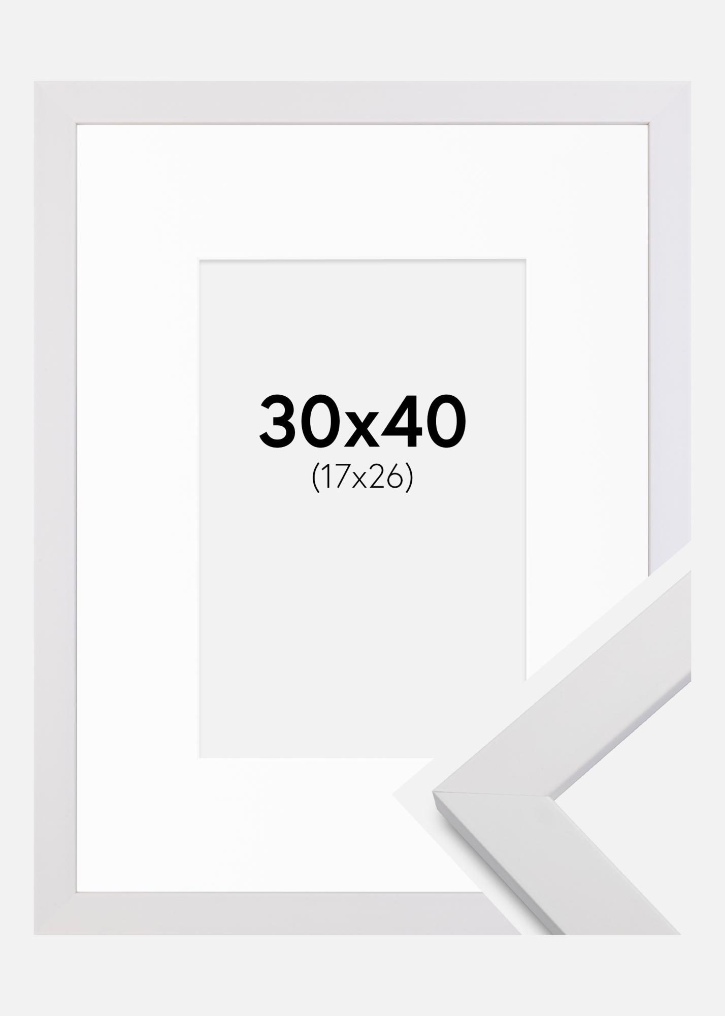 Raam White Wood 30x40 cm - paspartuu valge 18x27 cm