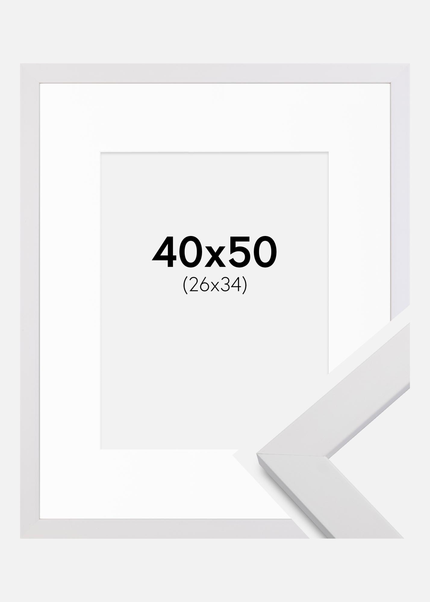 Raam White Wood 40x50 cm - paspartuu valge 27x35 cm