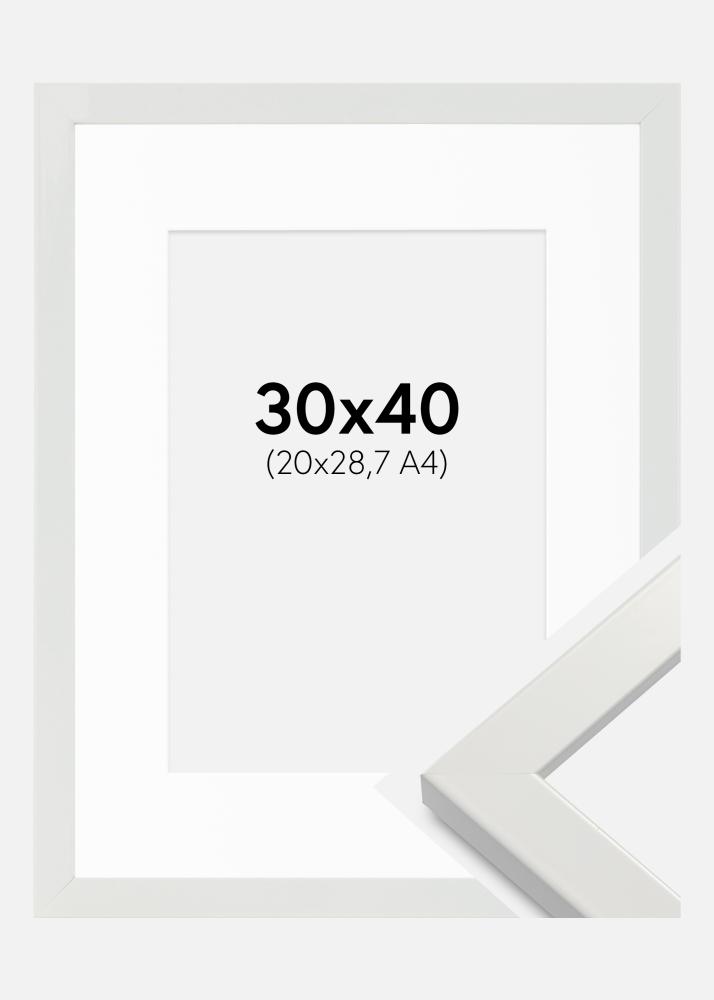 Raam White Wood Glossy 30x40 cm - paspartuu valge 21x29,7 cm (A4)
