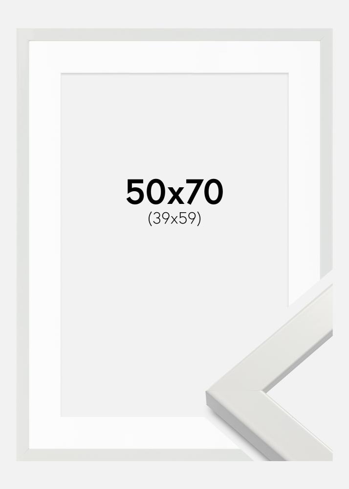 Raam White Wood Glossy 50x70 cm - paspartuu valge 40x60 cm